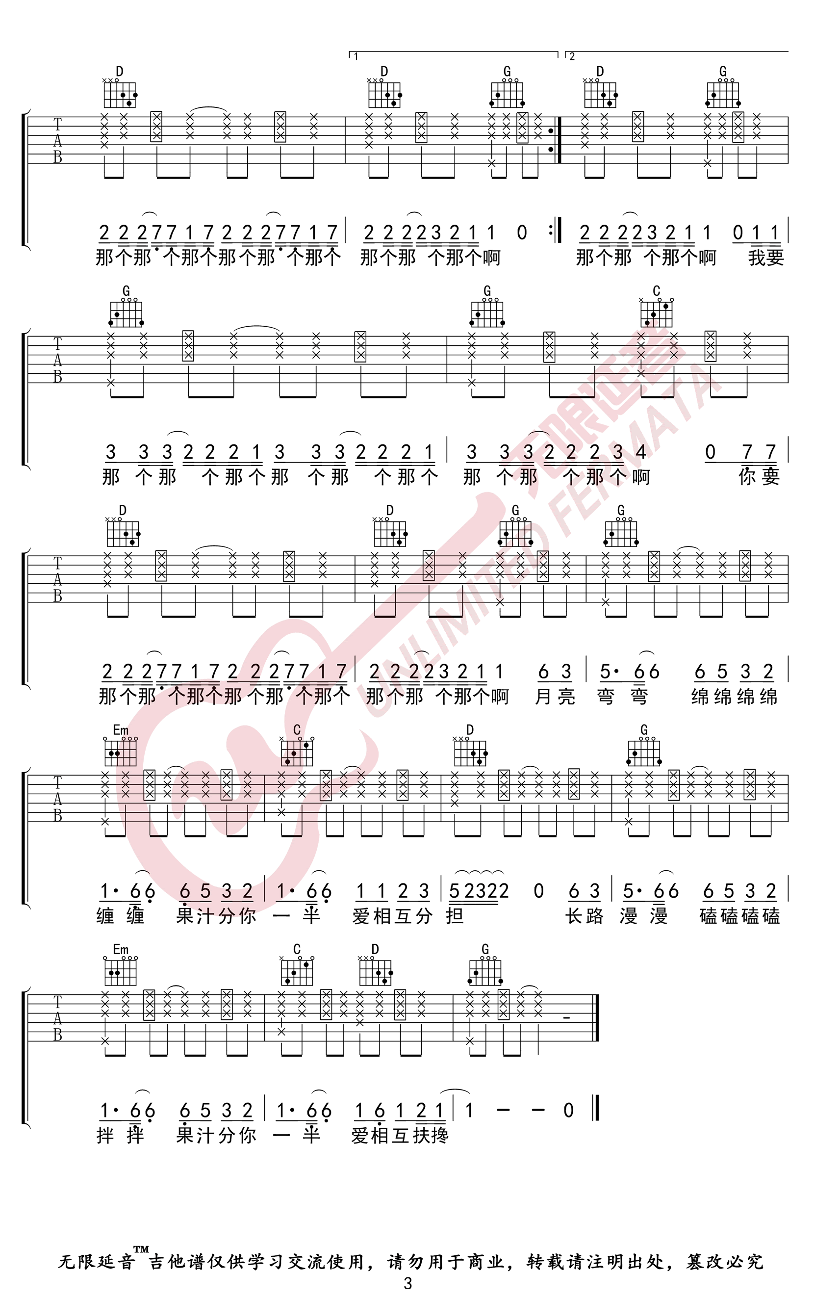 曲谱介绍: 《我的果汁分你一半》吉他谱,花儿乐队的一首经典老歌,我的果汁分你一半六线谱,G调指法,采用变调夹第四品位置,无限延音编配出品,吉他谱上传分享。 一首超暖超甜的歌曲,曲风欢快,积极乐观的内涵,唱出了纯真无暇的快乐心情,以及彼此之间有福同享有难同当的友情宣言。