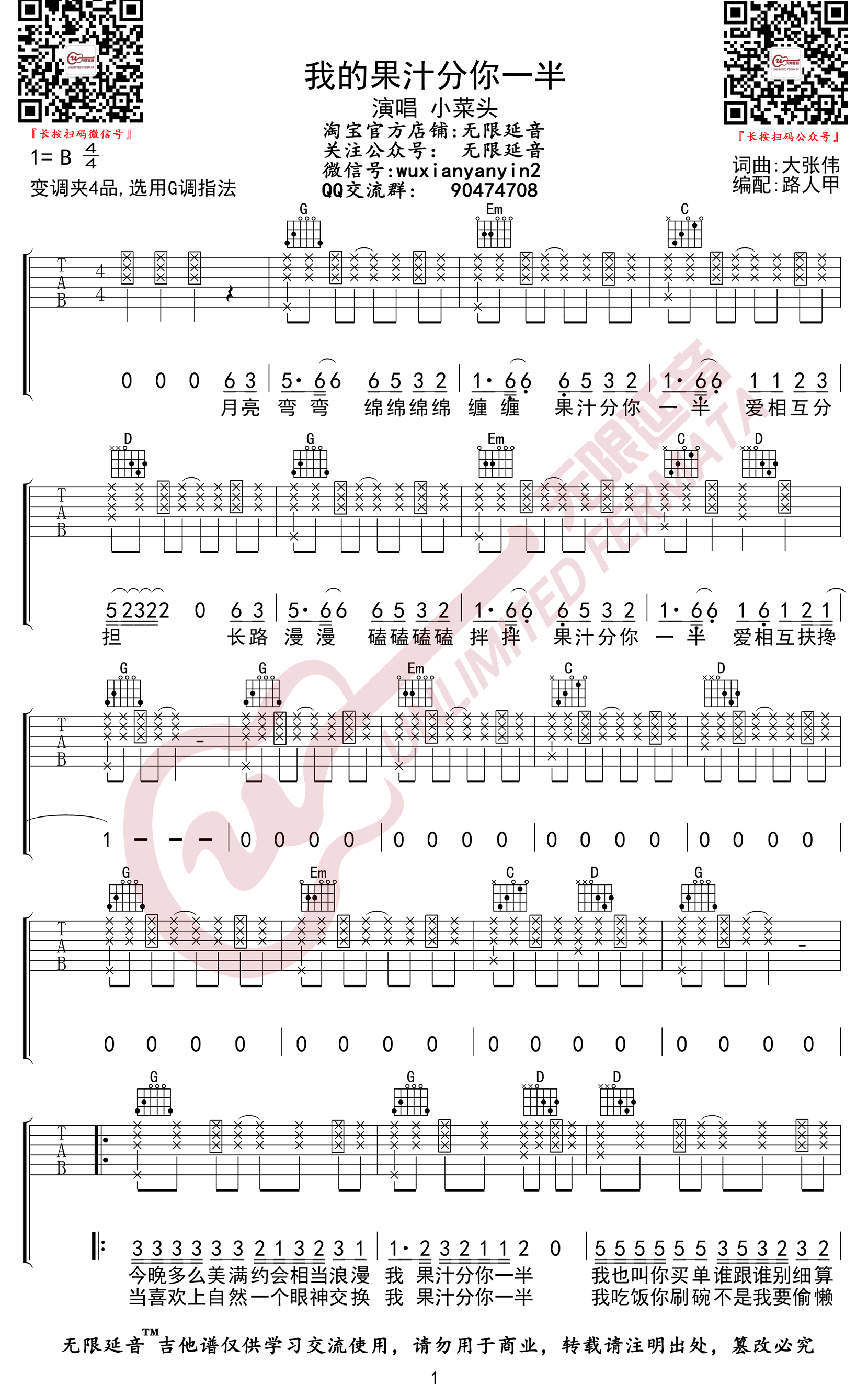 琴谱网为您精心推荐 我的果汁分你一半 高清图谱