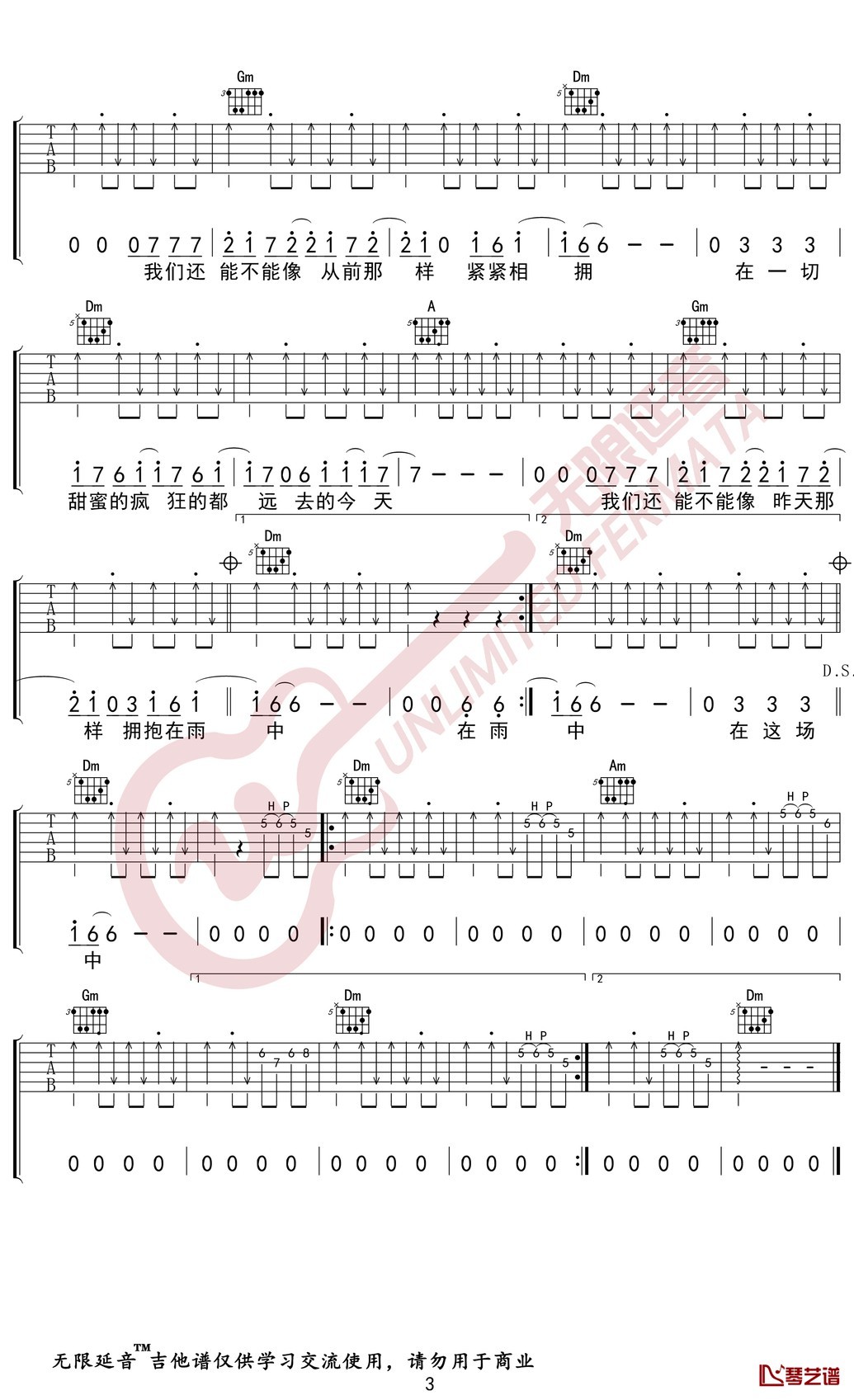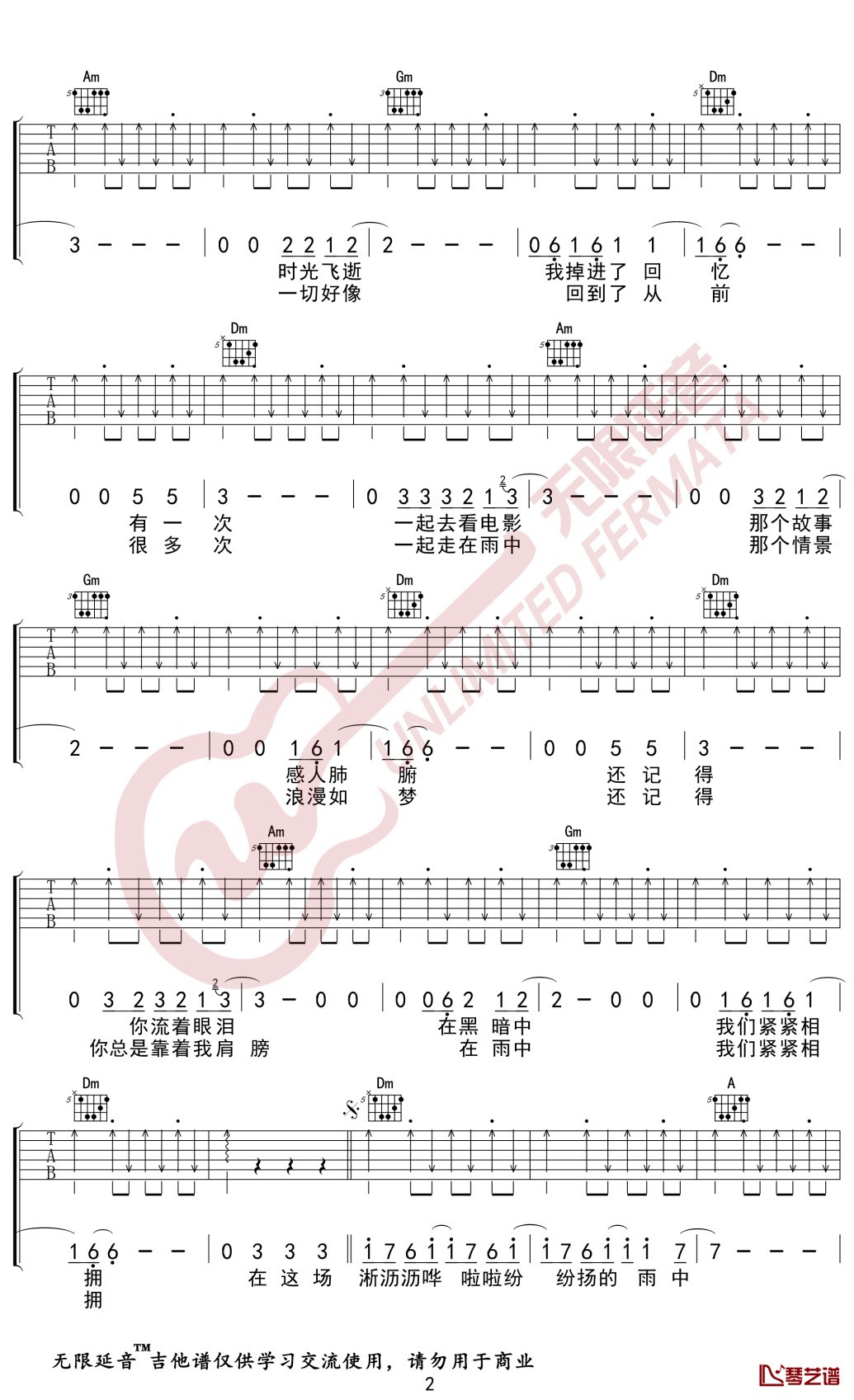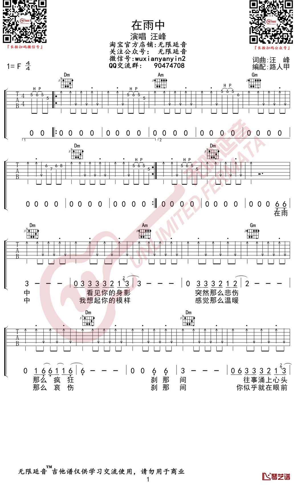 曲谱介绍: 汪峰《在雨中》吉他弹唱谱,共有3张高清图谱。