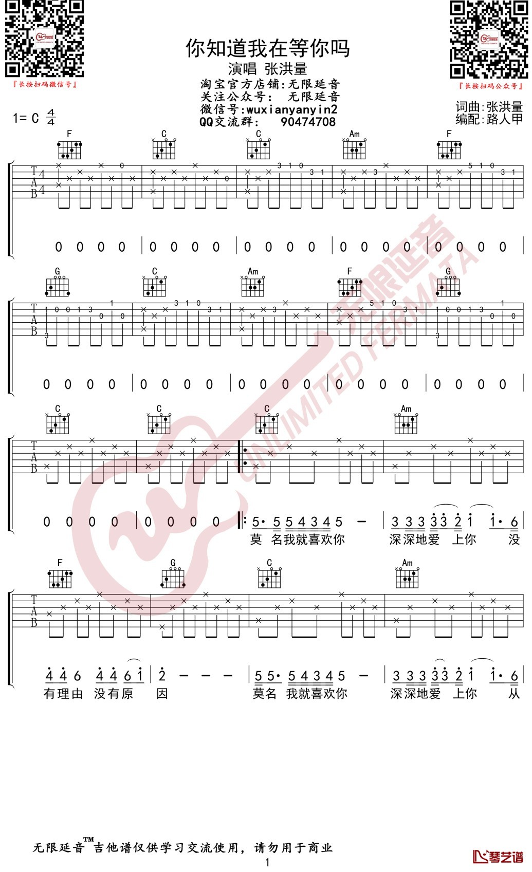 你知道我在等你吗吉他谱 - 张洪量 - 吉他弹唱谱