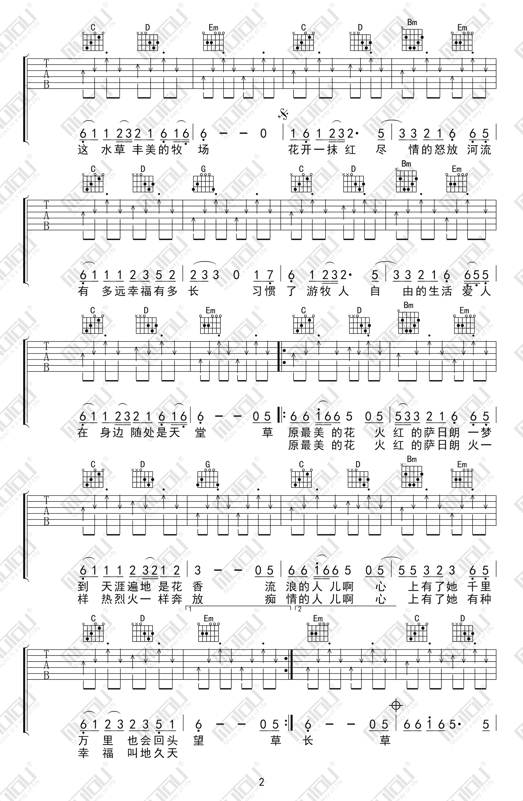 火红的萨日朗吉他谱 - 乌兰托雅 - 吉他弹唱谱