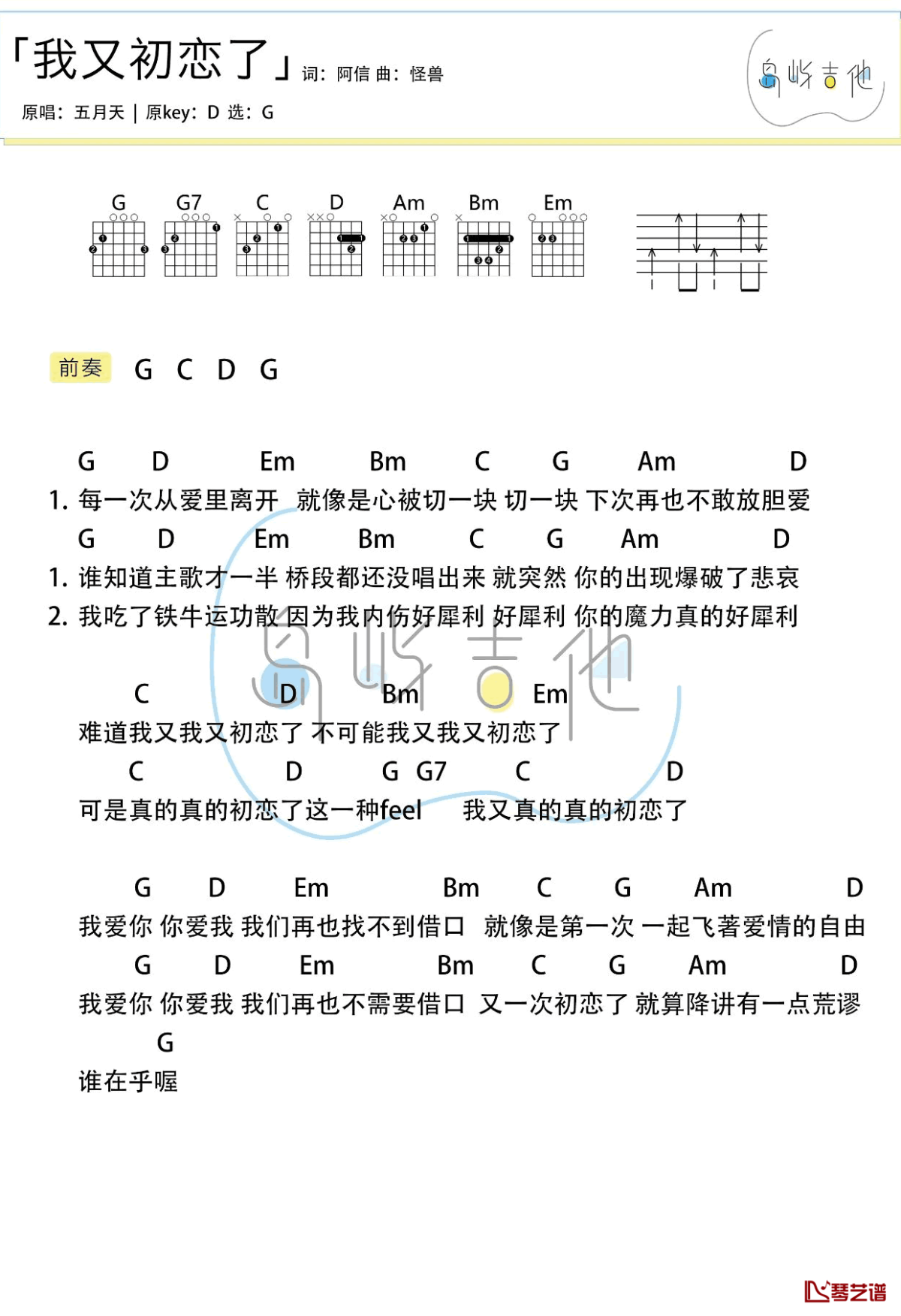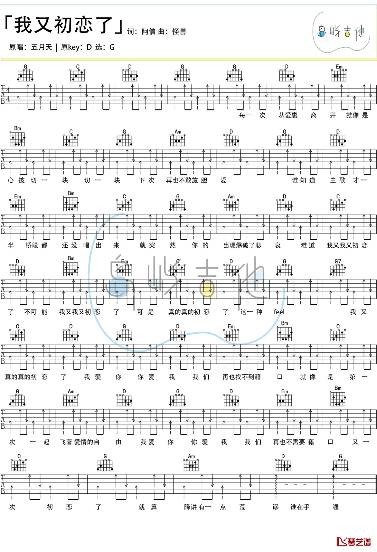 我又初恋了吉他谱 - 五月天 - G调吉他独奏谱