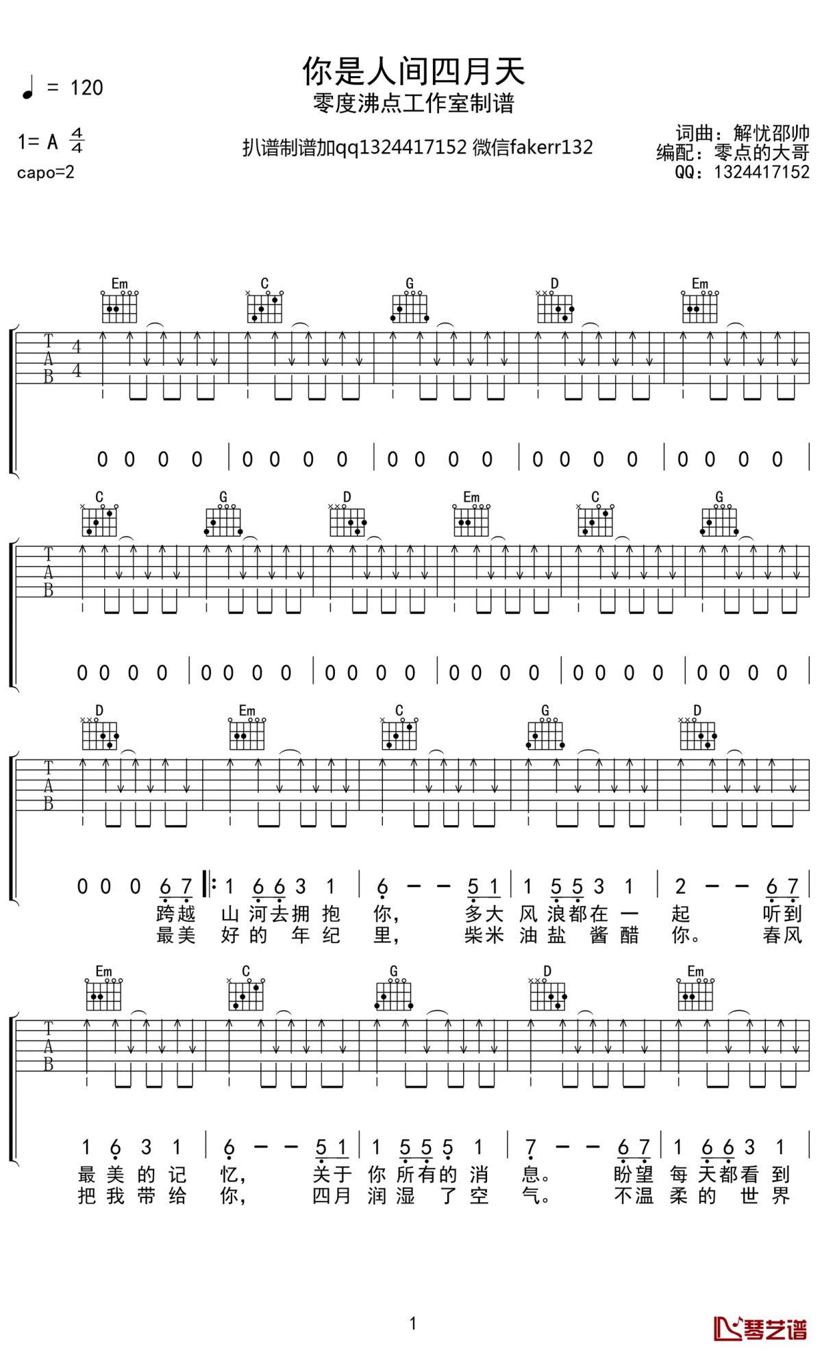 曲谱介绍: 解忧邵帅《你是人间四月天》吉他弹唱谱,共有4张高清图谱。