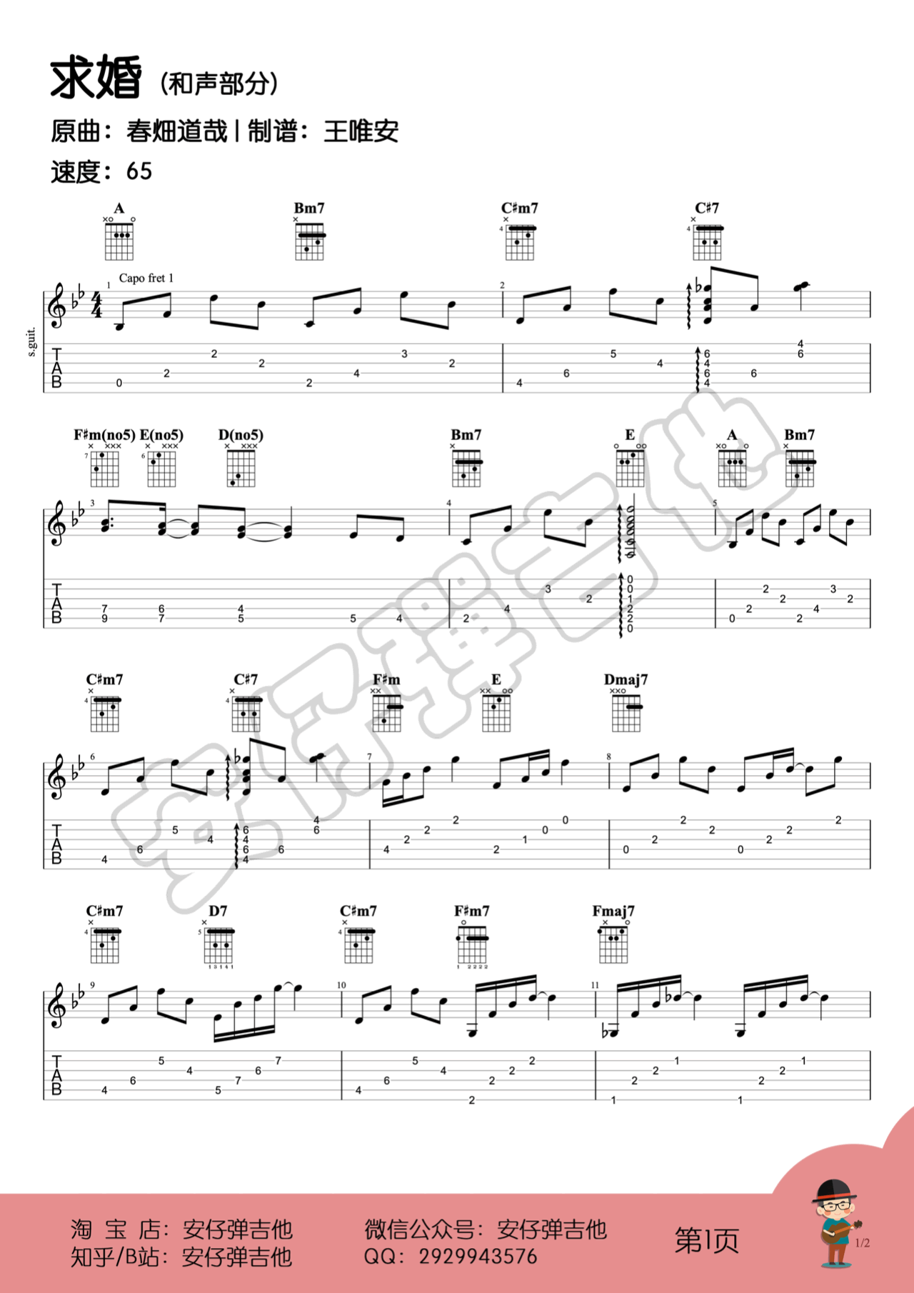 曲谱介绍: 《求婚》指弹谱,春畑道哉的一首吉他指弹演奏作品,求婚吉他谱,双吉他版本,主音与和声部分,谱子做了演示视频里的那一部分,原曲其实大部分也是重复的,感谢安仔弹吉他编配出品,更新上传。 今天推荐的是来自日本摇滚乐队“夏之管(TUBE)”的吉他手春畑道哉的指弹曲《プロポーズ》,歌名中文意思是求婚。 春畑道哉是日本的一流吉他手,与其说他是弹吉他不如说是用吉他在说话,在樱花纷飞的时节述说一段春天的故事。