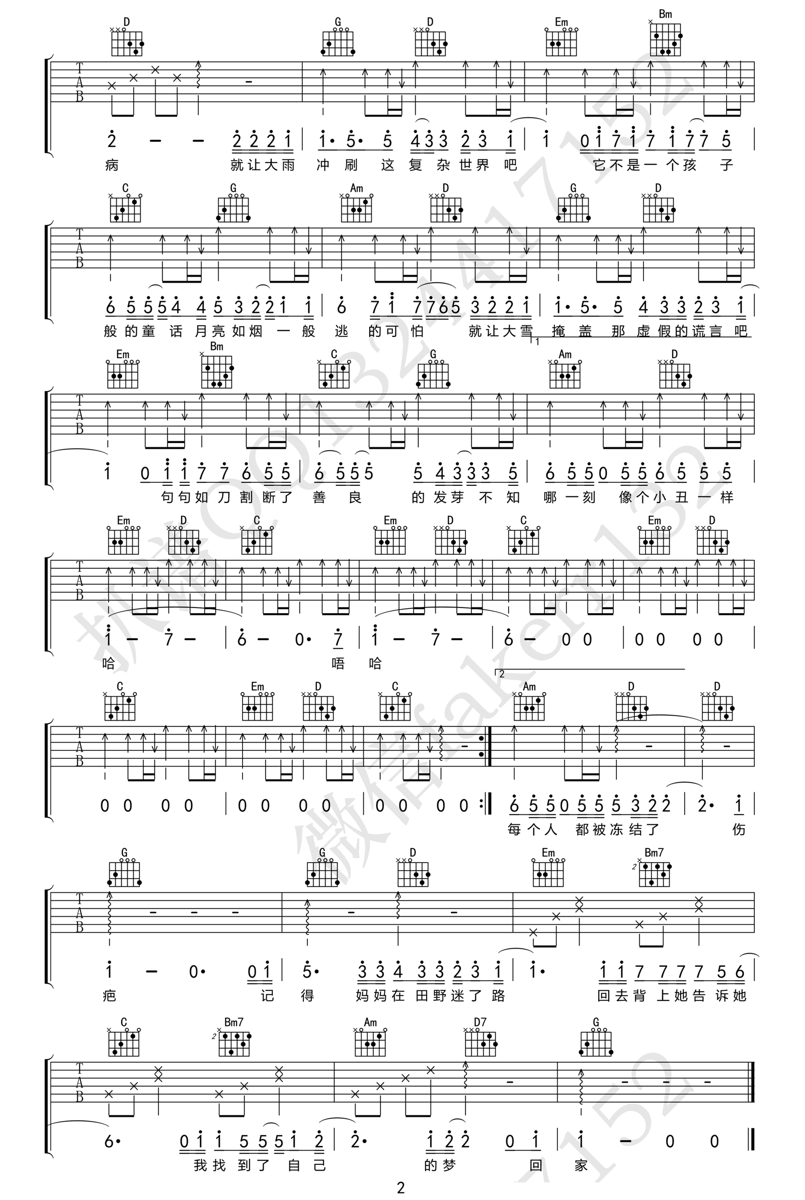 曲谱介绍: 《重》吉他谱,隔壁老樊的一首新歌作品,《我是唱作人》节目现场演唱。重六线谱,原调bB调,CAPO夹三品,live版本编配,简单弹唱高清图片谱,零度沸点音乐工作室出品,整理上传。 一首关于成长历程的歌曲,强烈的节奏,唱入心坎的歌词,震撼人心的演唱,赢得无数人的喜爱。