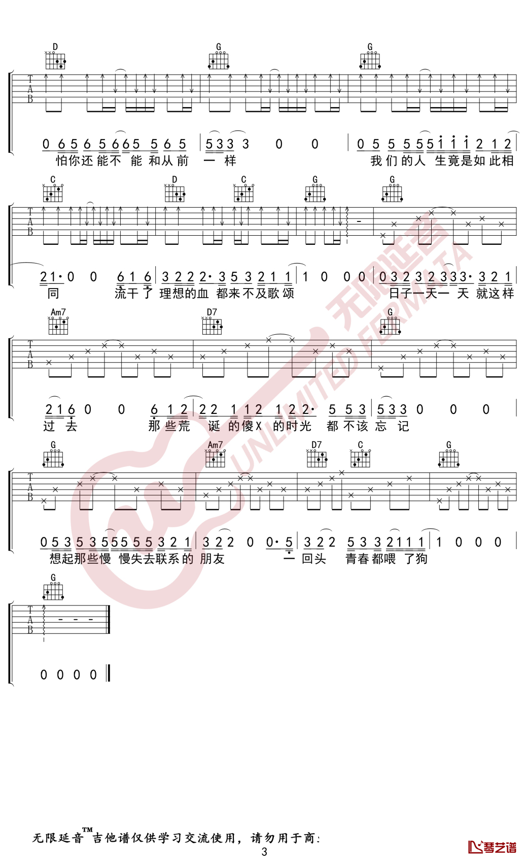 曲谱介绍: 贰佰《狗日的青春》吉他独奏谱,共有3张高清图谱。