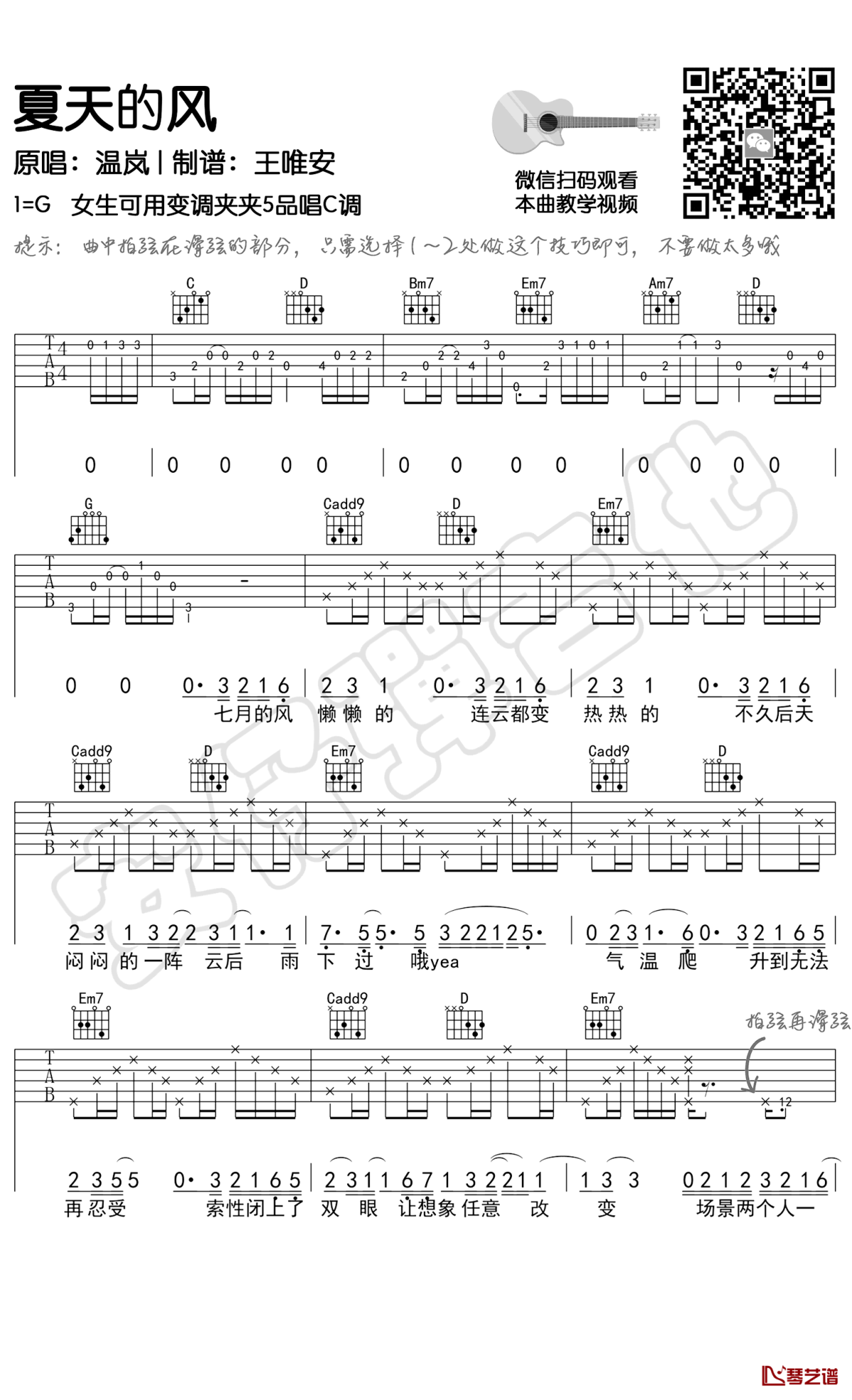 夏天的风吉他谱 - 温岚 - 吉他弹唱谱