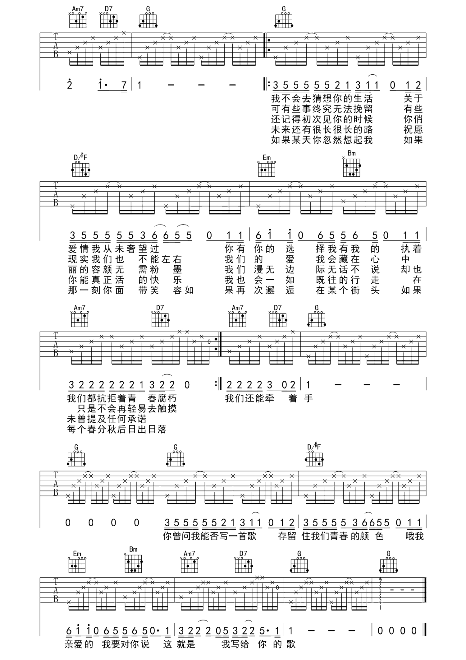 当前位置:琴谱网>吉他弹唱>写给你的歌