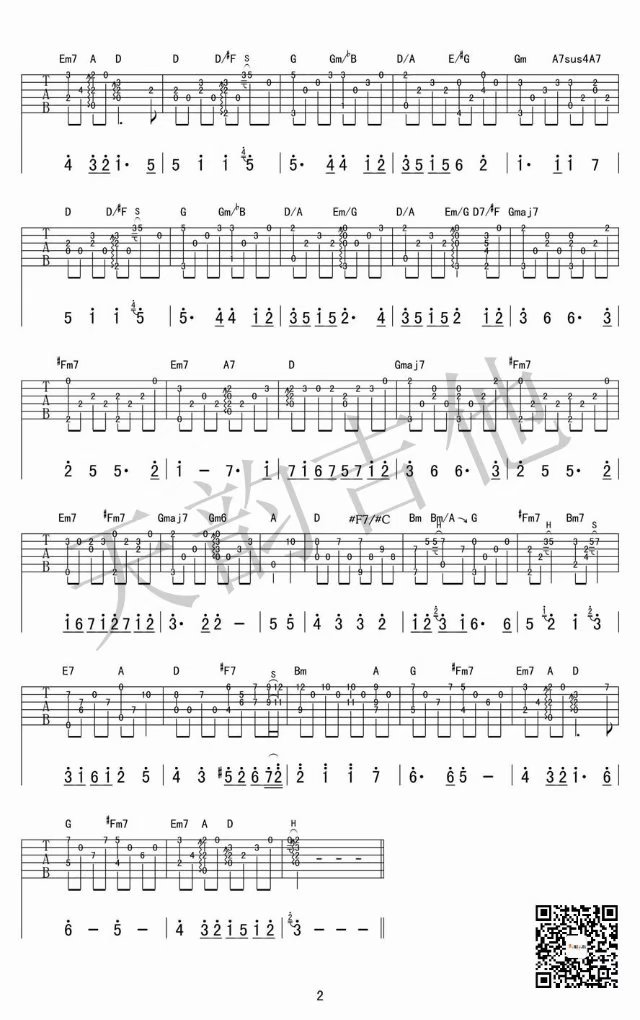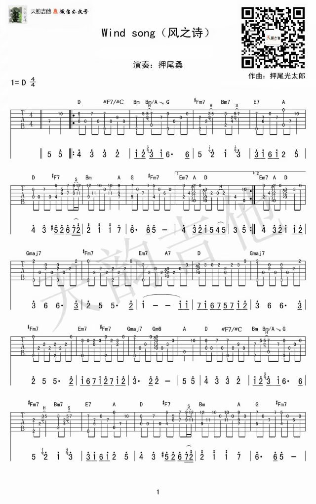 曲谱介绍: 押尾桑《风之诗》吉他独奏谱,共有2张高清图谱,免翻页排版设计。