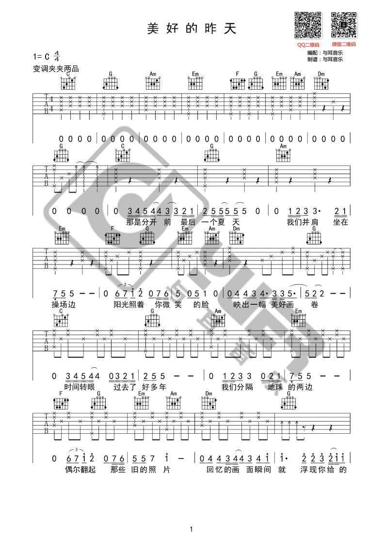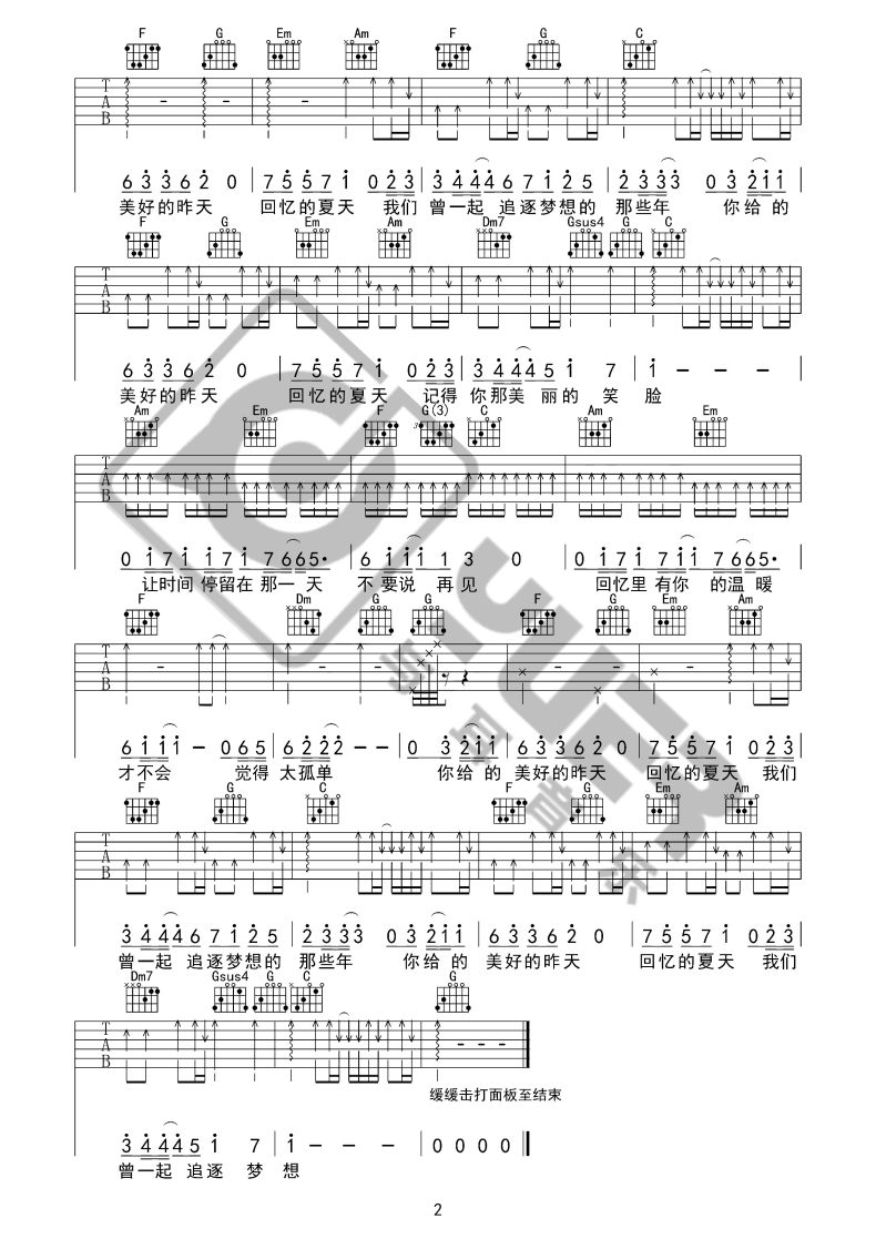 曲谱介绍: 《美好的昨天》吉他独奏谱,共有2张高清图谱,免翻页排版设计。