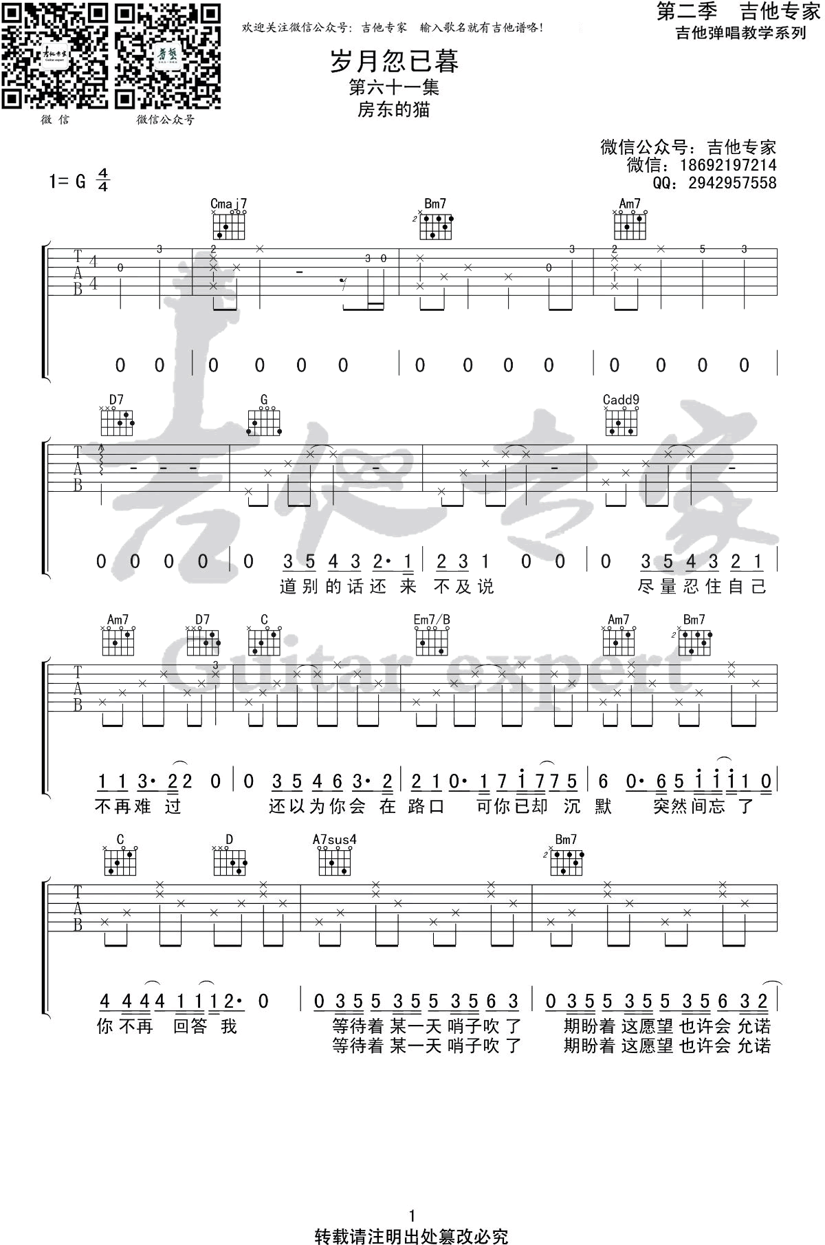 岁月忽已暮吉他谱 - 房东的猫 - 吉他弹唱谱