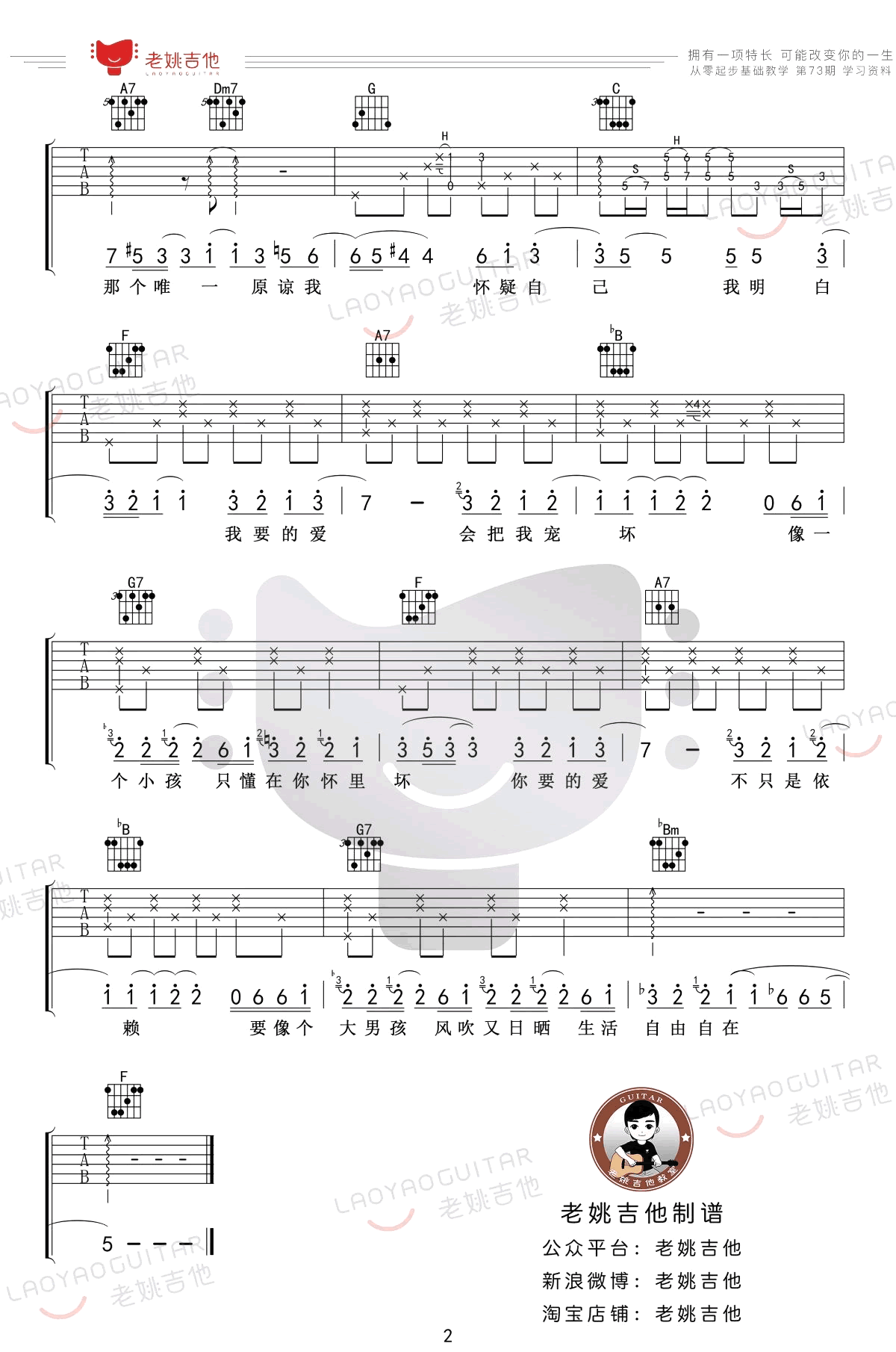 曲谱介绍: 《你要的爱》吉他谱,戴佩妮创作演唱的一首代表作品,也是偶像剧《流星花园》片尾曲。你要的爱吉他六线谱,F调,弹唱谱共两张图片谱例,感谢老姚吉他编配出品,更新上传。 想必80、90后的小伙伴都熟悉的经典偶像剧主题曲,今天送上改编,作为从零起步基础教学之F调练习歌曲,随谱附上吉他弹唱教学,喜欢这首经典老歌的琴友们可以跟随示范演示视频练习起来。