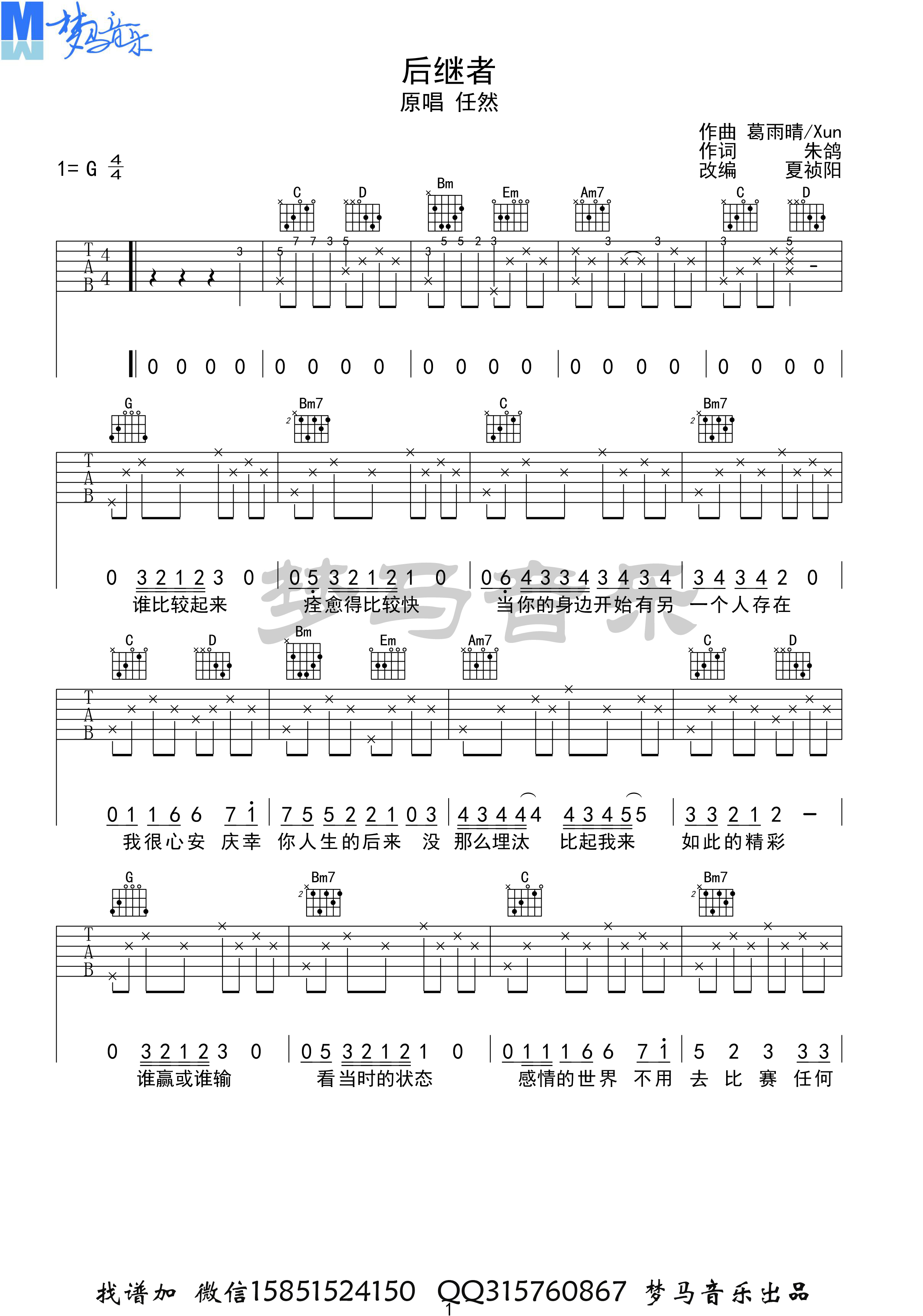 曲谱介绍: 任然《后继者》吉他弹唱谱,共有3张高清图谱。
