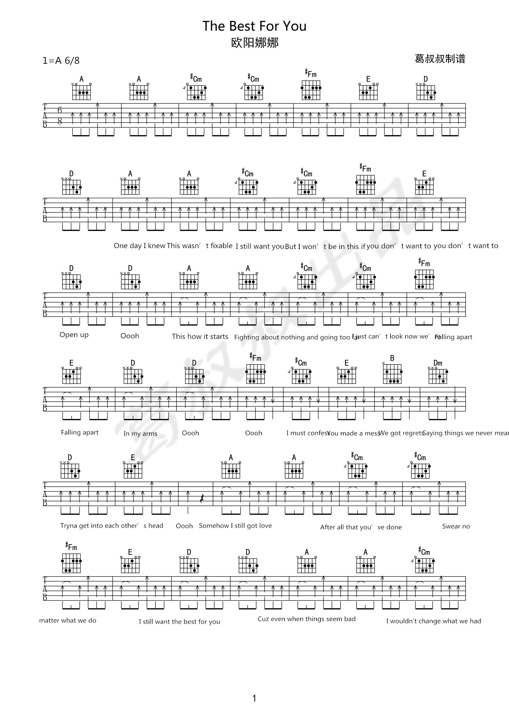 The Best For You吉他谱 - 欧阳娜娜 - 吉他弹唱谱