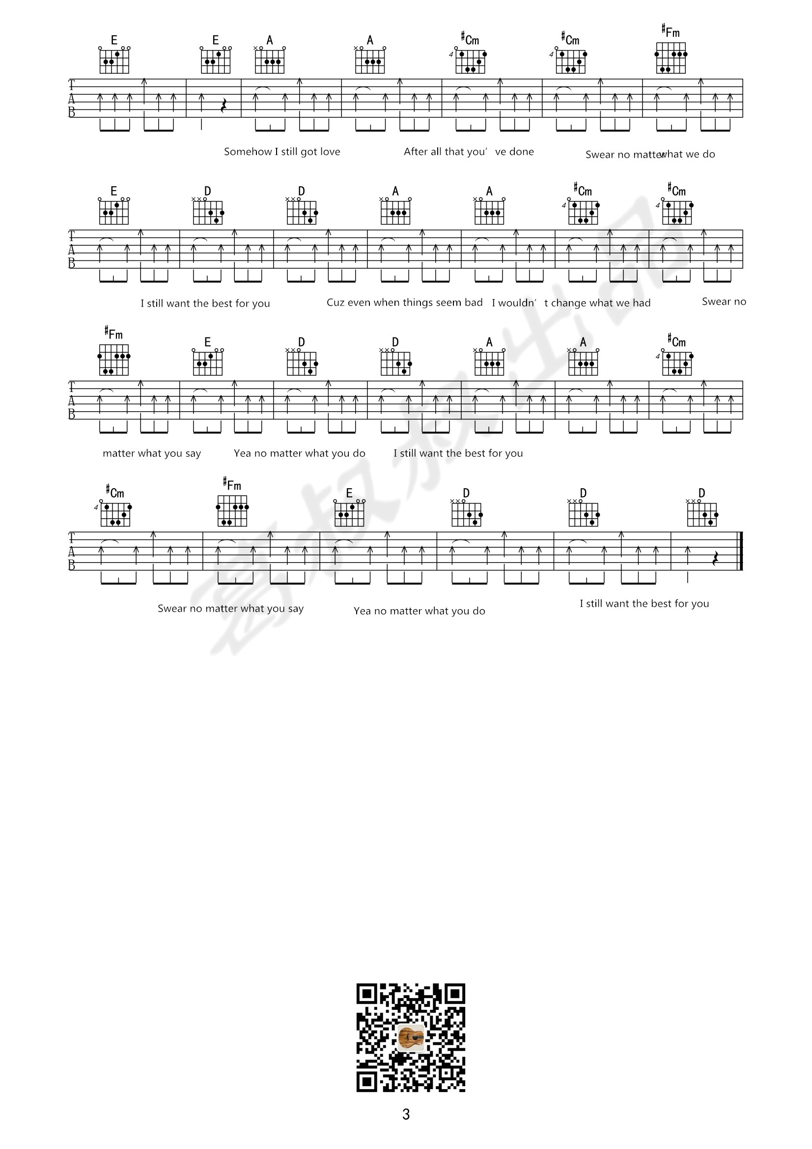 曲谱介绍: 欧阳娜娜《TheBestForYou》吉他弹唱谱,共有3张高清图谱。