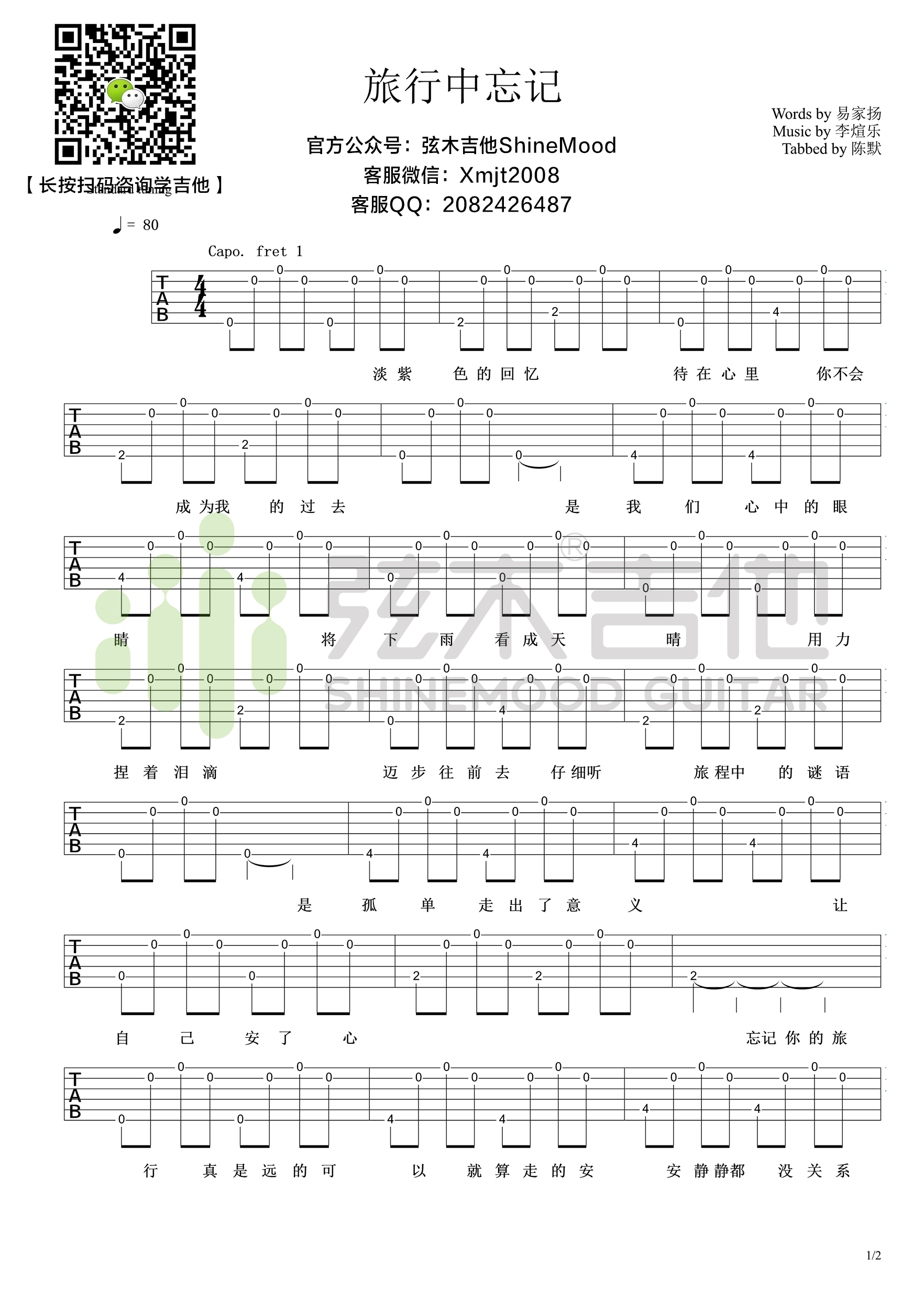琴谱网为您精心推荐 旅行中忘记 高清图谱