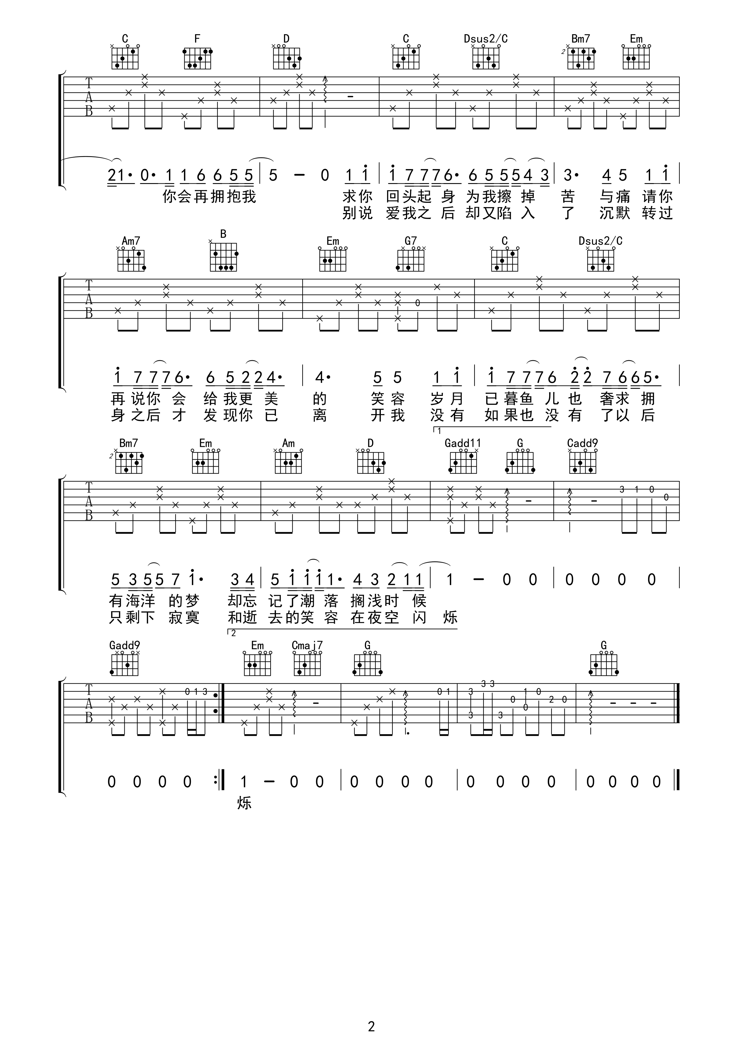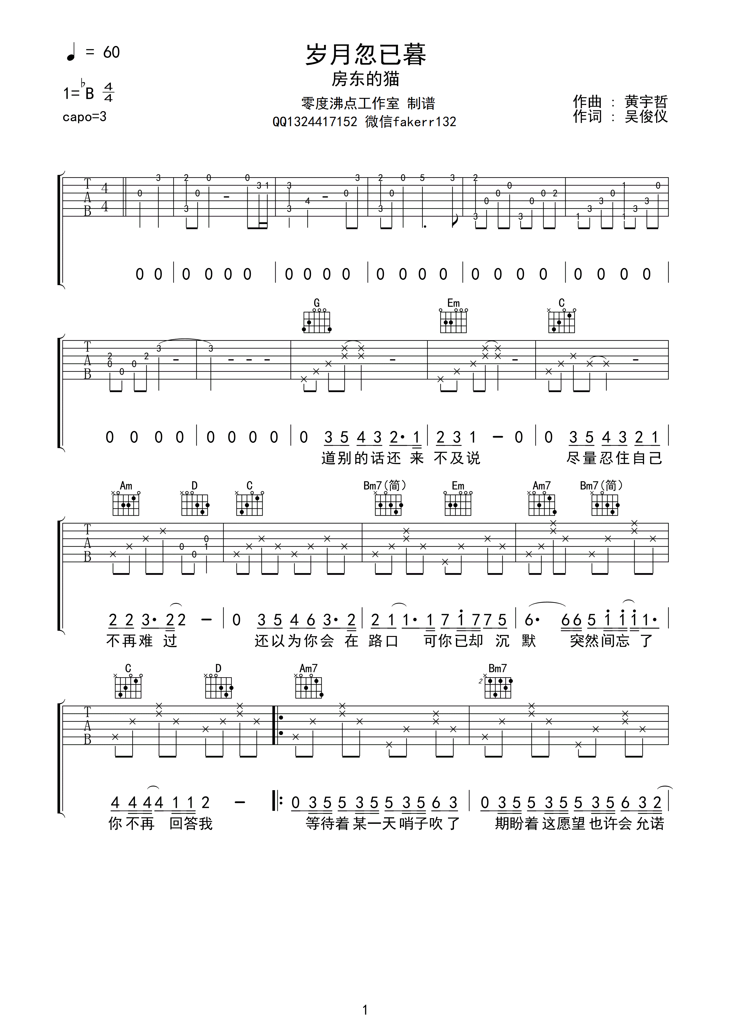 曲谱介绍: 房东的猫《岁月忽已暮》吉他弹唱谱,共有2张高清图谱,免翻页排版设计。