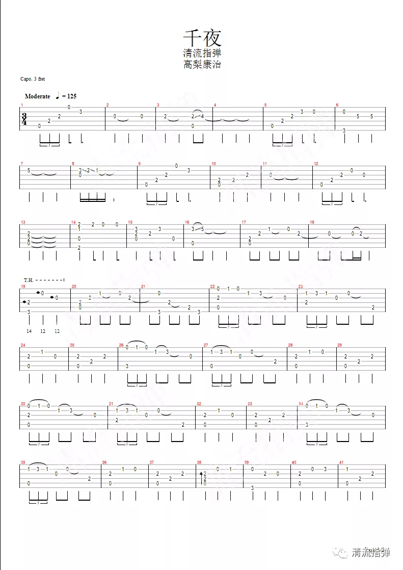 曲谱介绍: 高梨康治《千夜》吉他弹唱谱,共有2张高清图谱,免翻页排版设计。