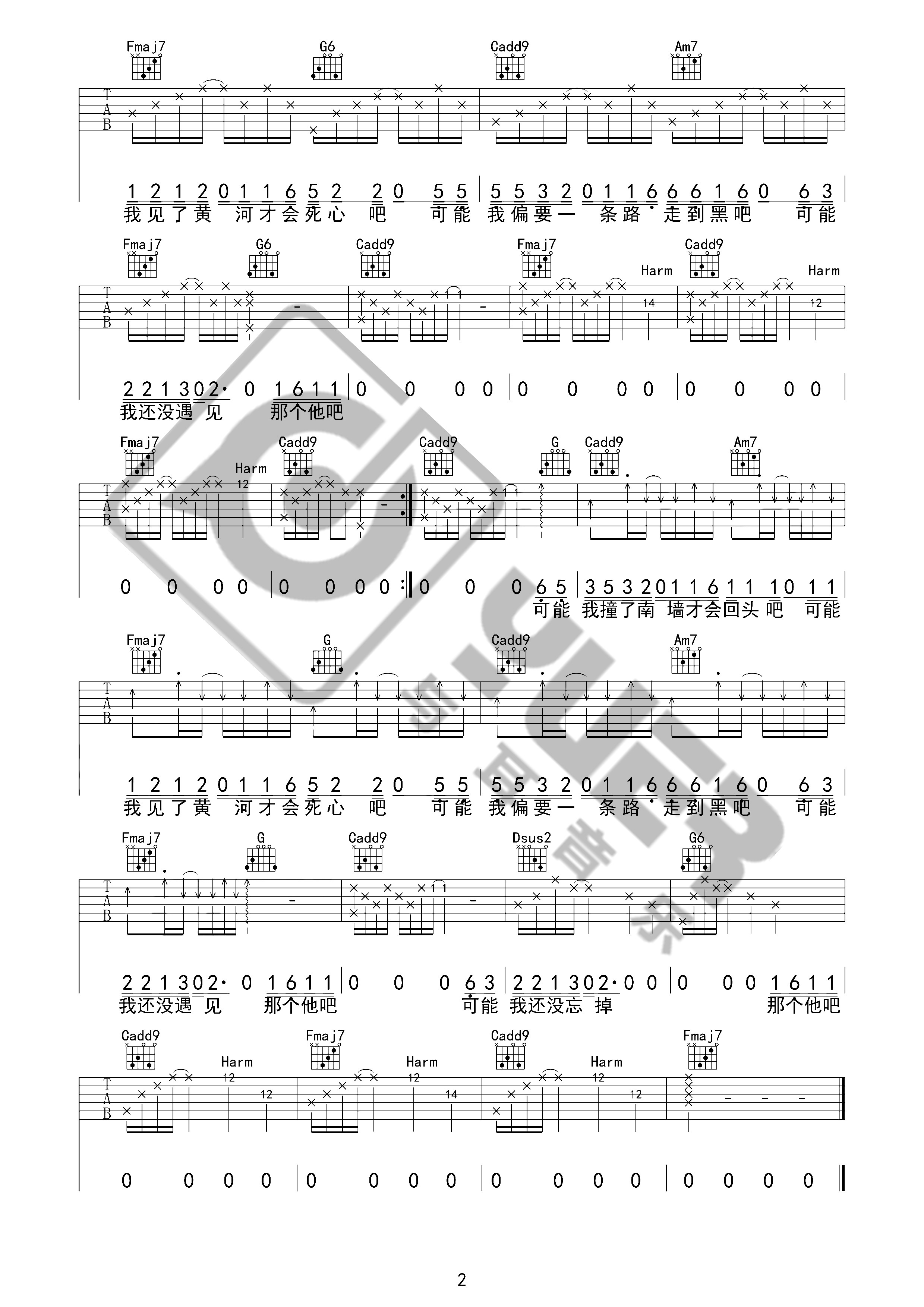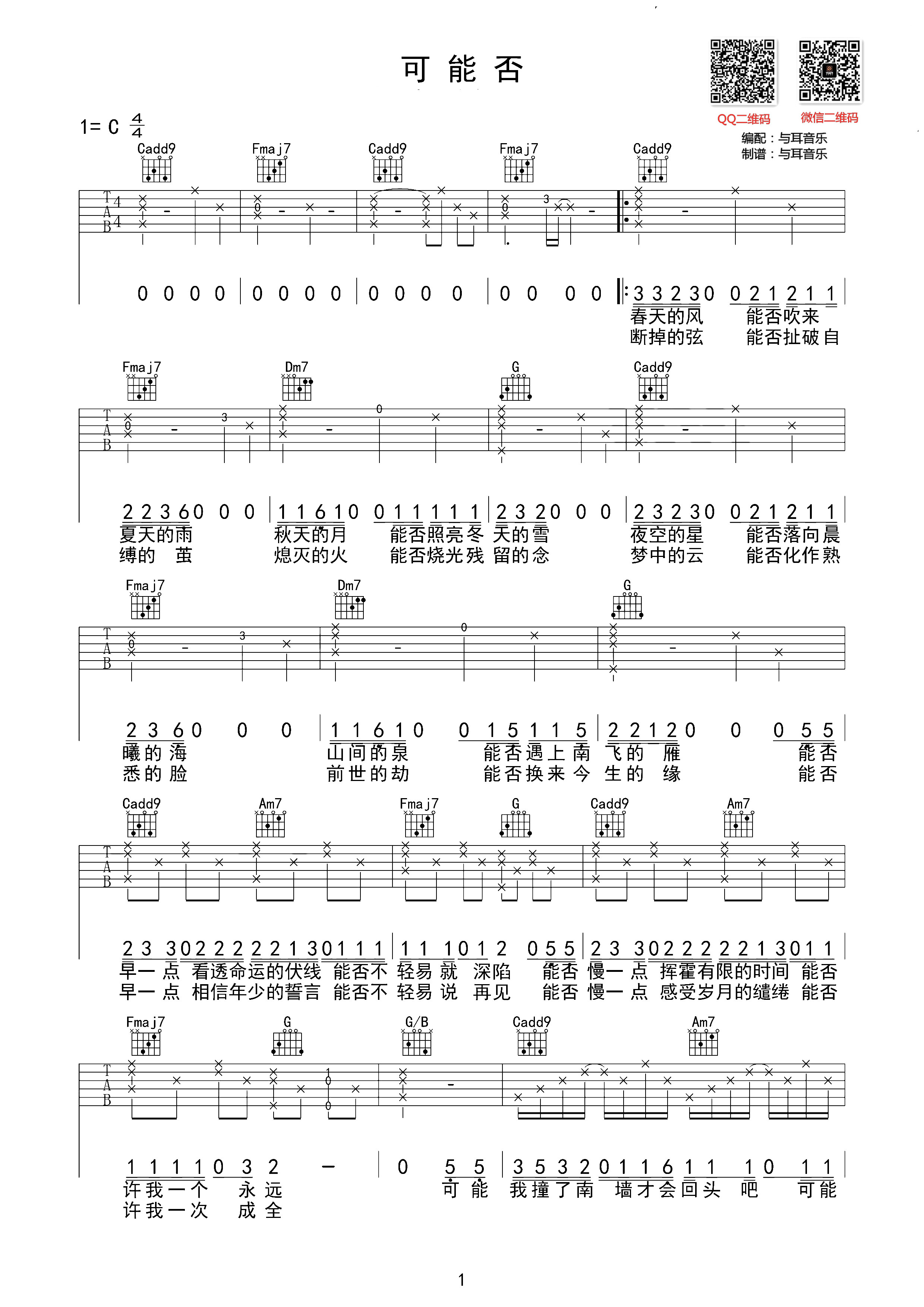 曲谱介绍: 木小雅《可能否》吉他弹唱谱,共有2张高清图谱,免翻页排版设计。