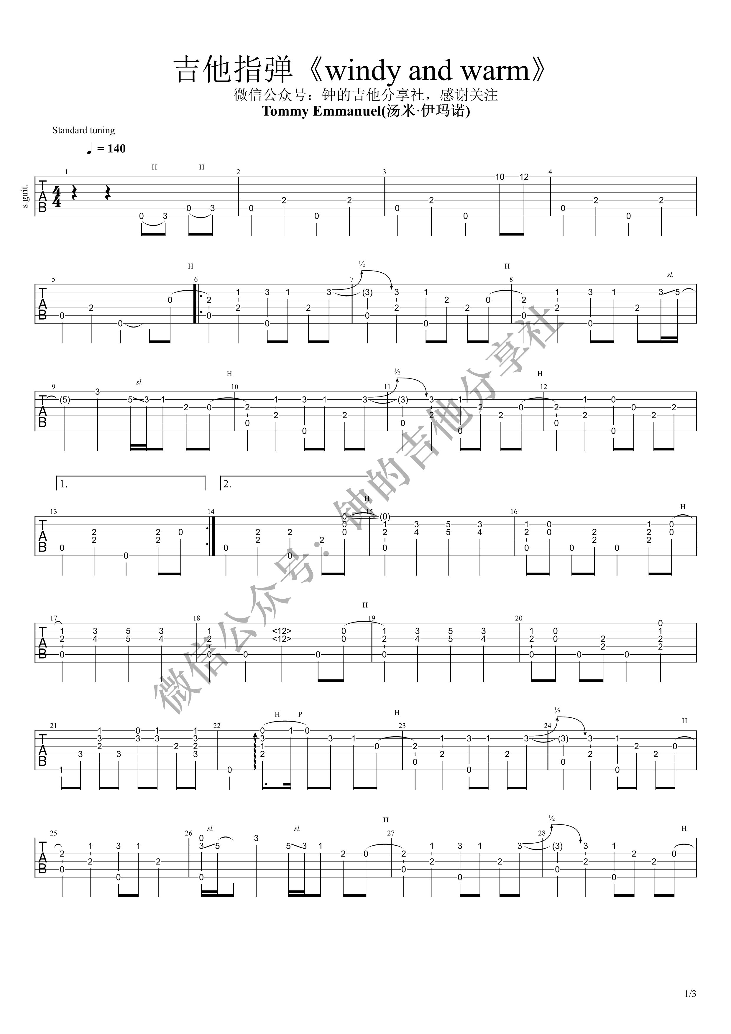 曲谱介绍: Tommy《WindyandWarmwindyandwarm》吉他弹唱谱,共有3张高清图谱。