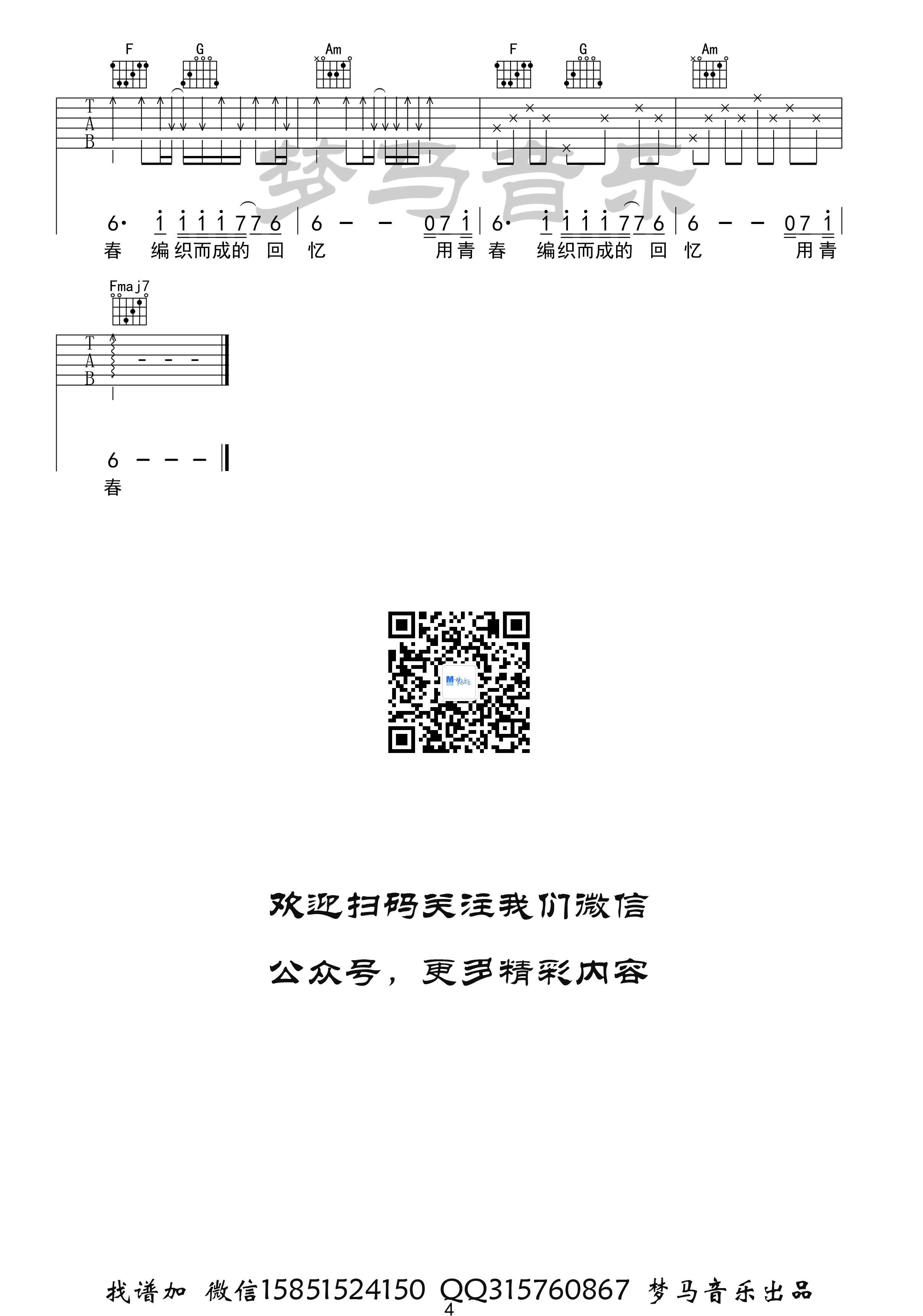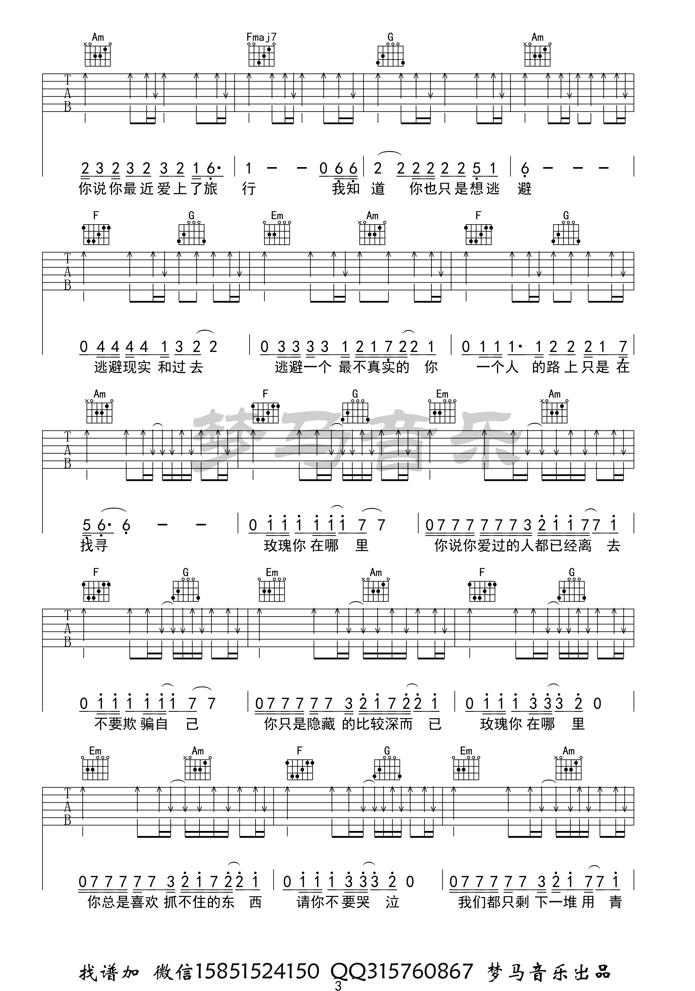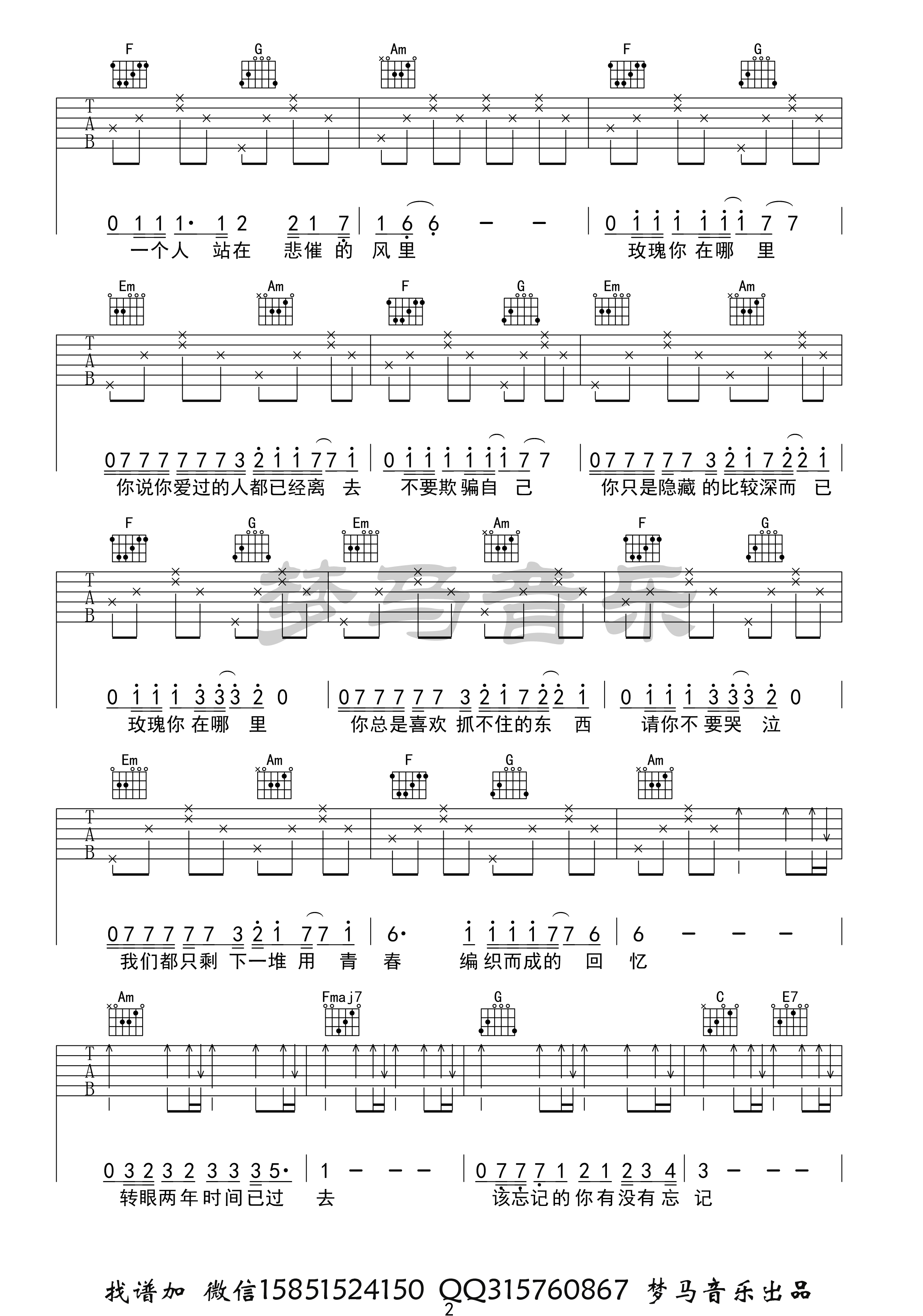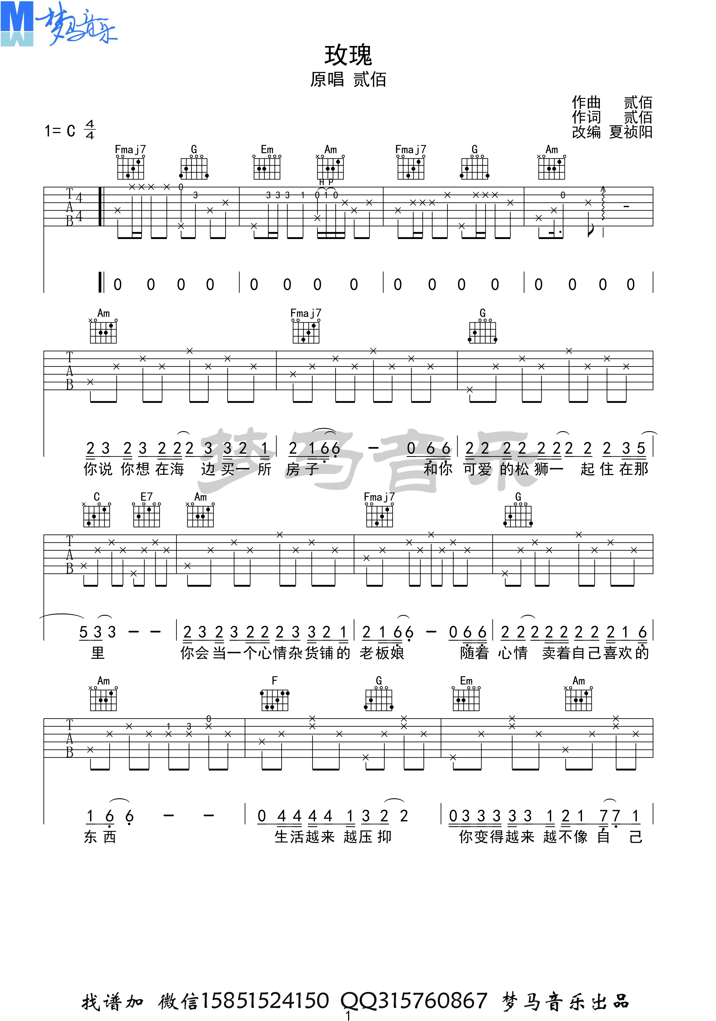 曲谱介绍: 贰佰《玫瑰》吉他弹唱谱,共有4张高清图谱。