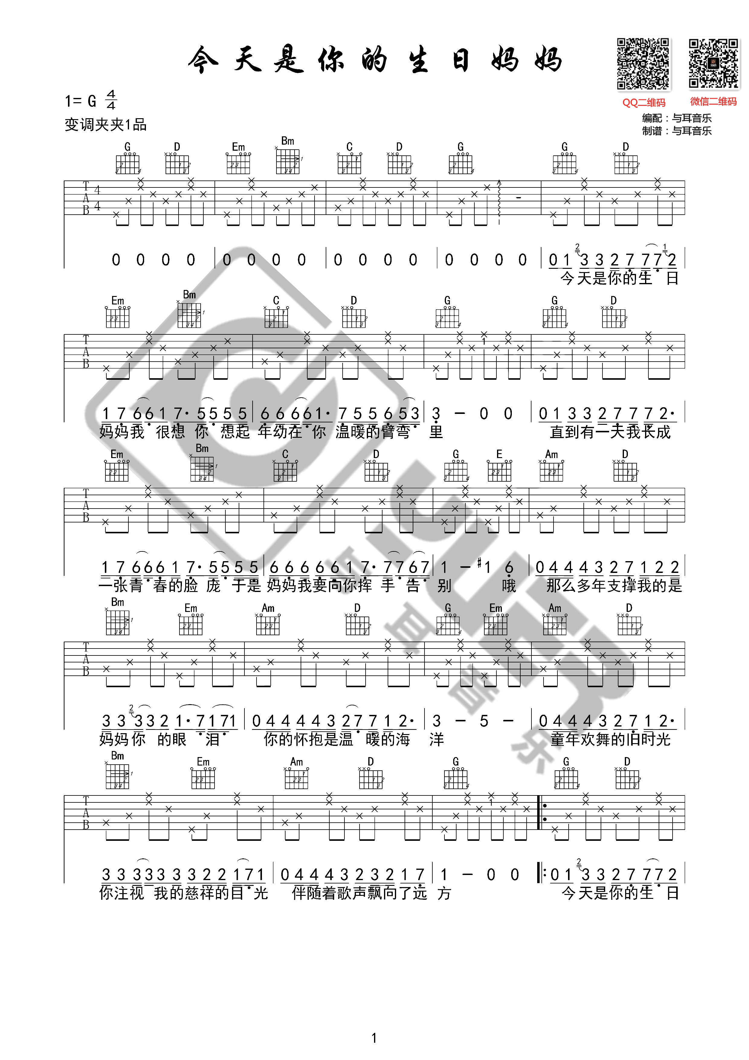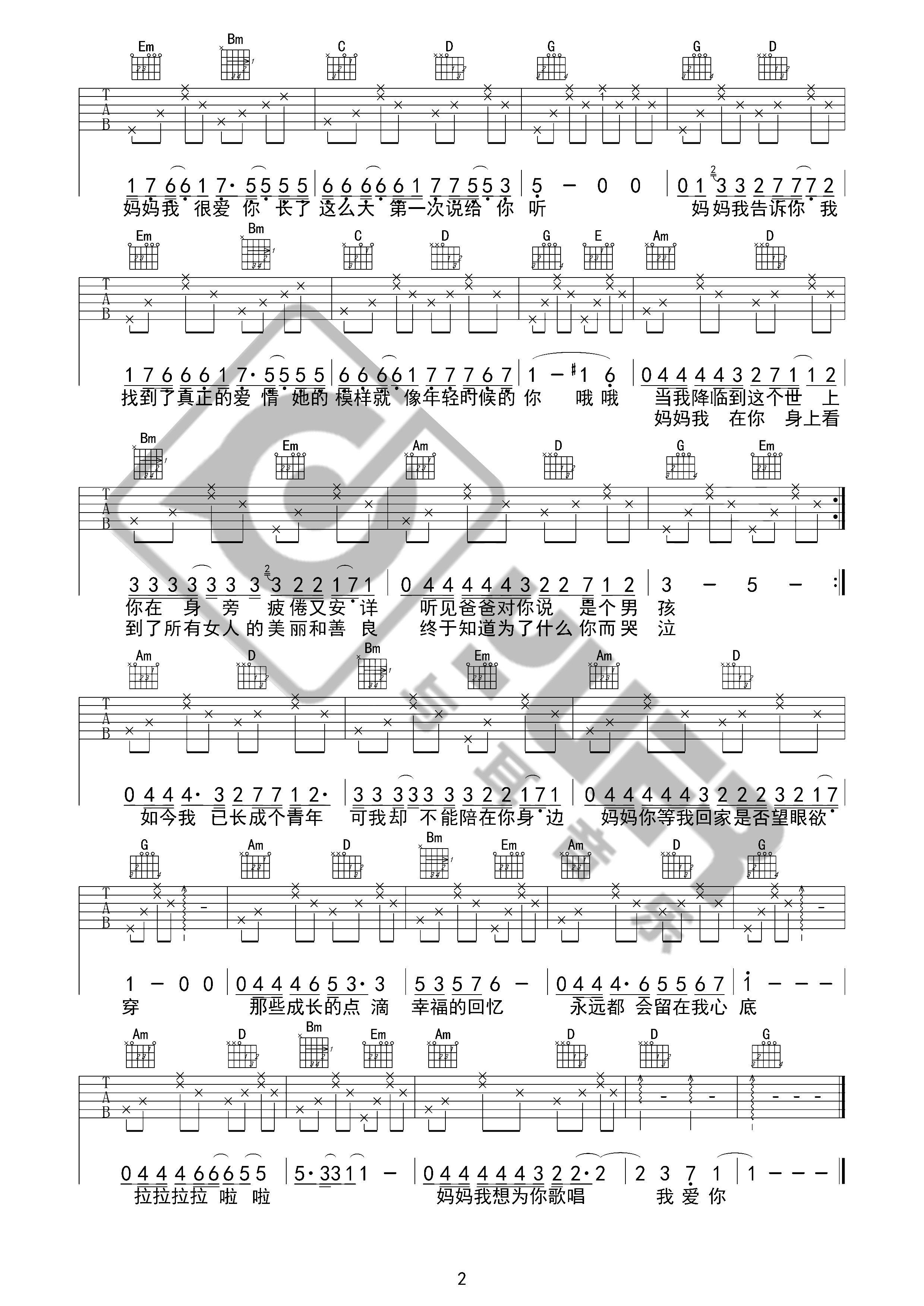 曲谱介绍: 李健《今天是你的生日妈妈》吉他弹唱谱,共有2张高清图谱,免翻页排版设计。