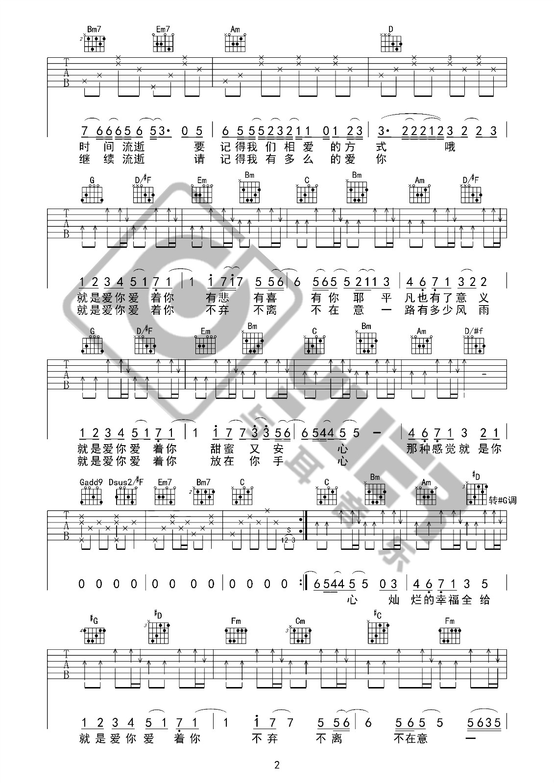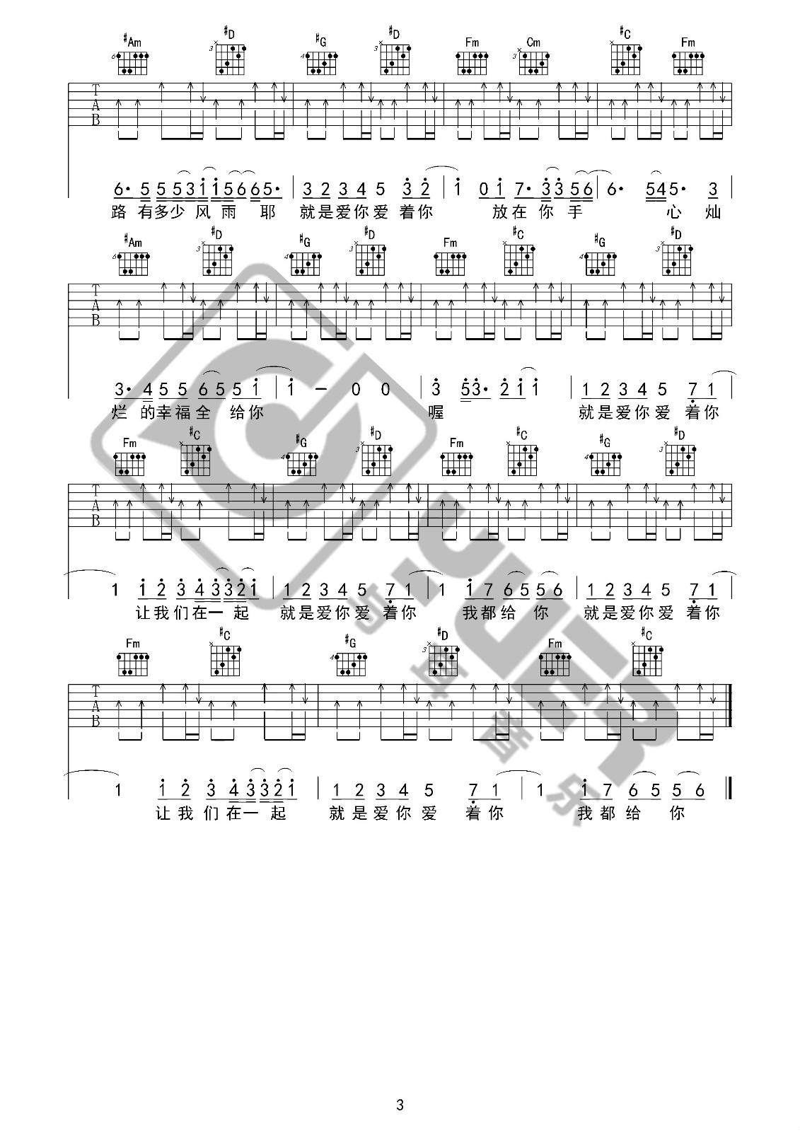 曲谱介绍: 陶喆《就是爱你》吉他弹唱谱,共有3张高清图谱。