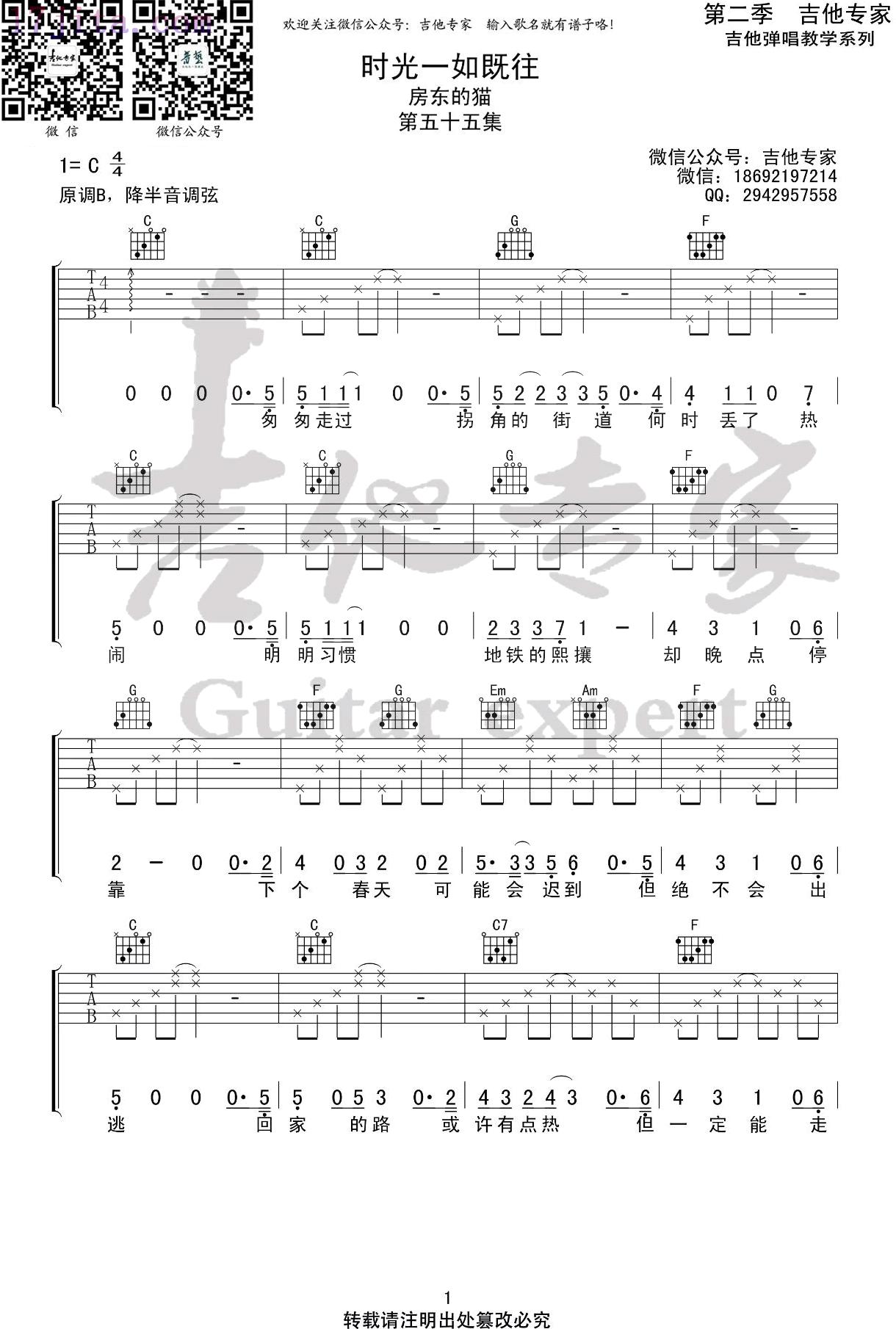 时光一如既往吉他谱 - 吉他弹唱谱