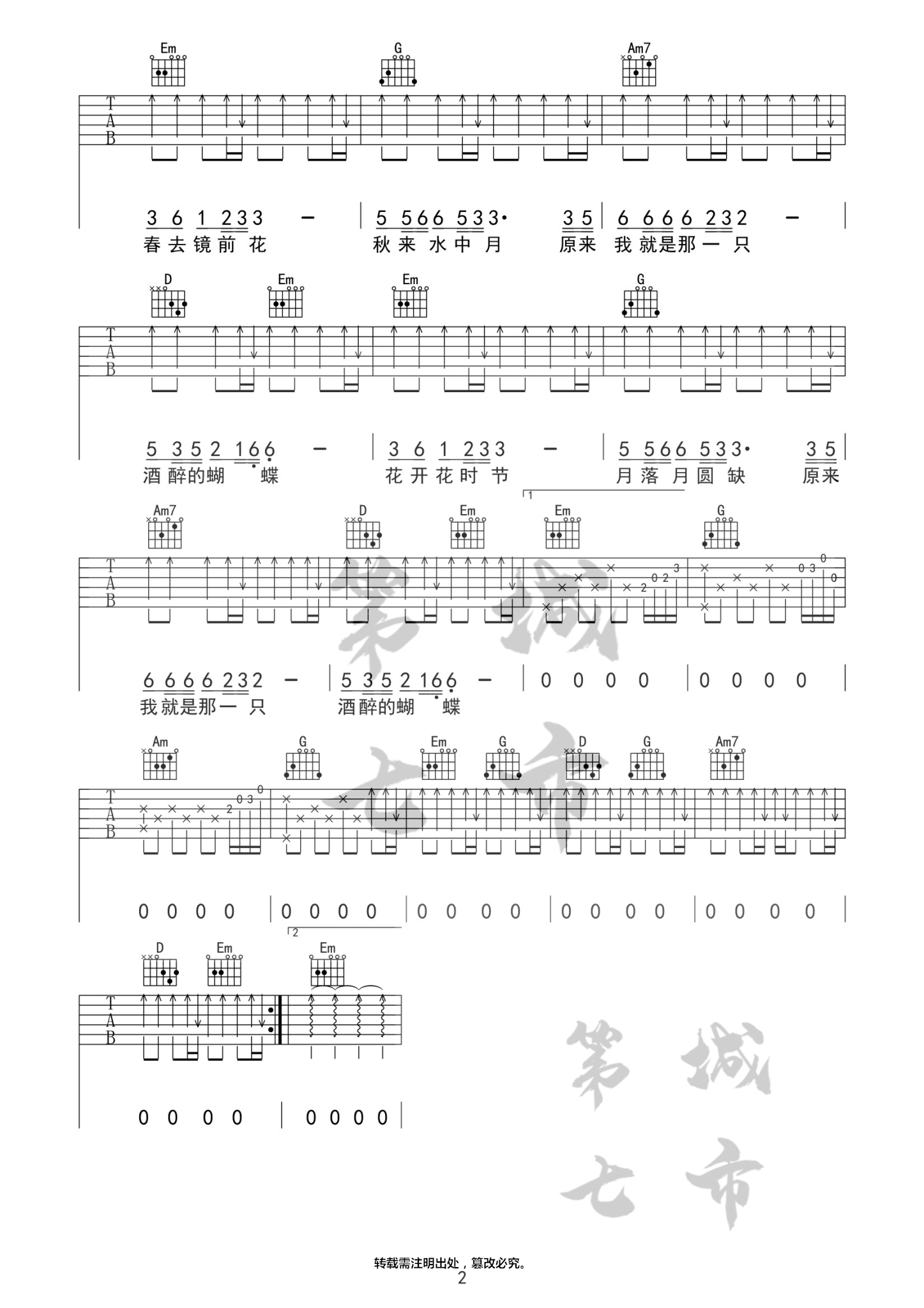 曲谱介绍: 崔伟立《酒醉的蝴蝶》吉他弹唱谱,共有2张高清图谱,免翻页排版设计。