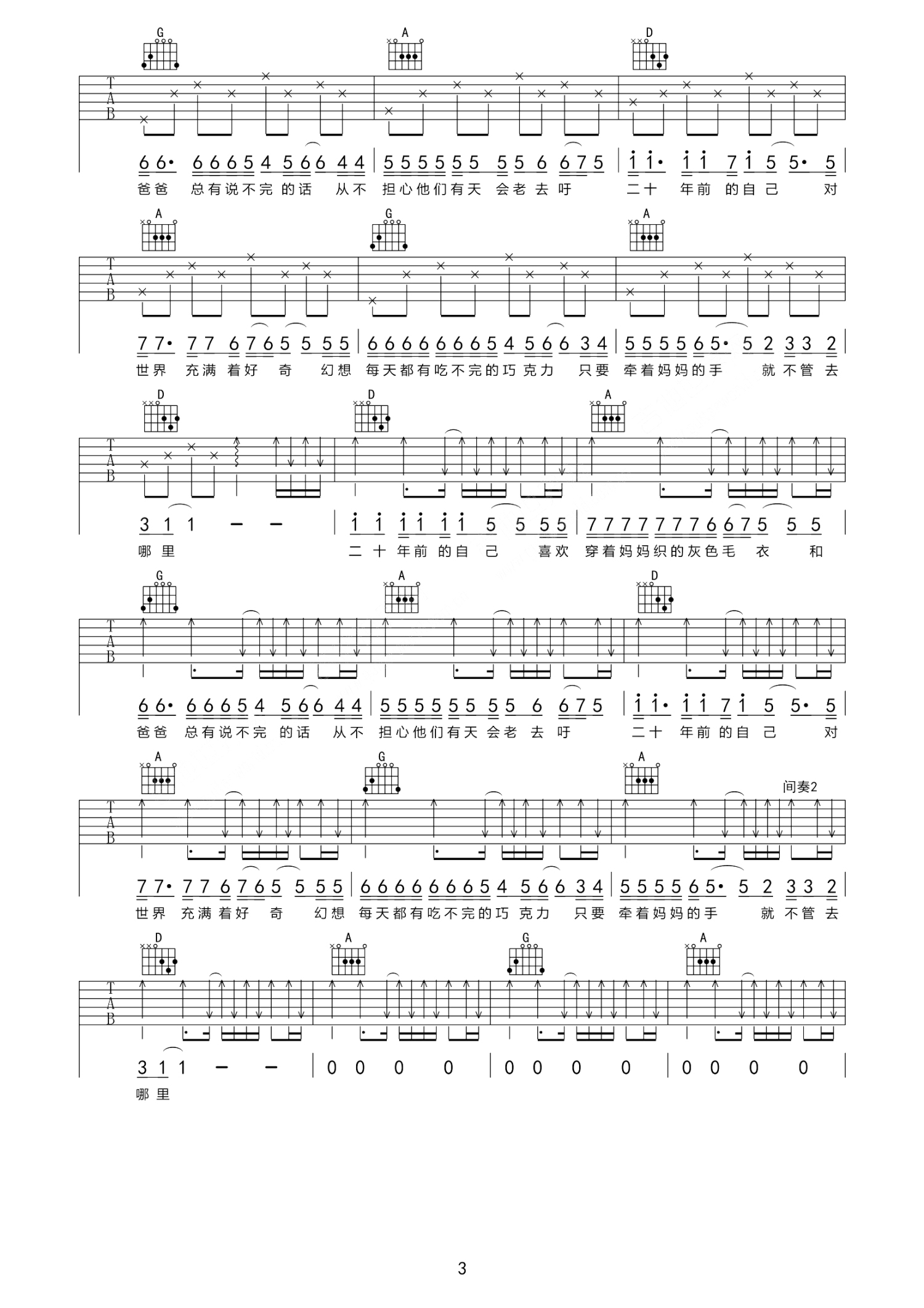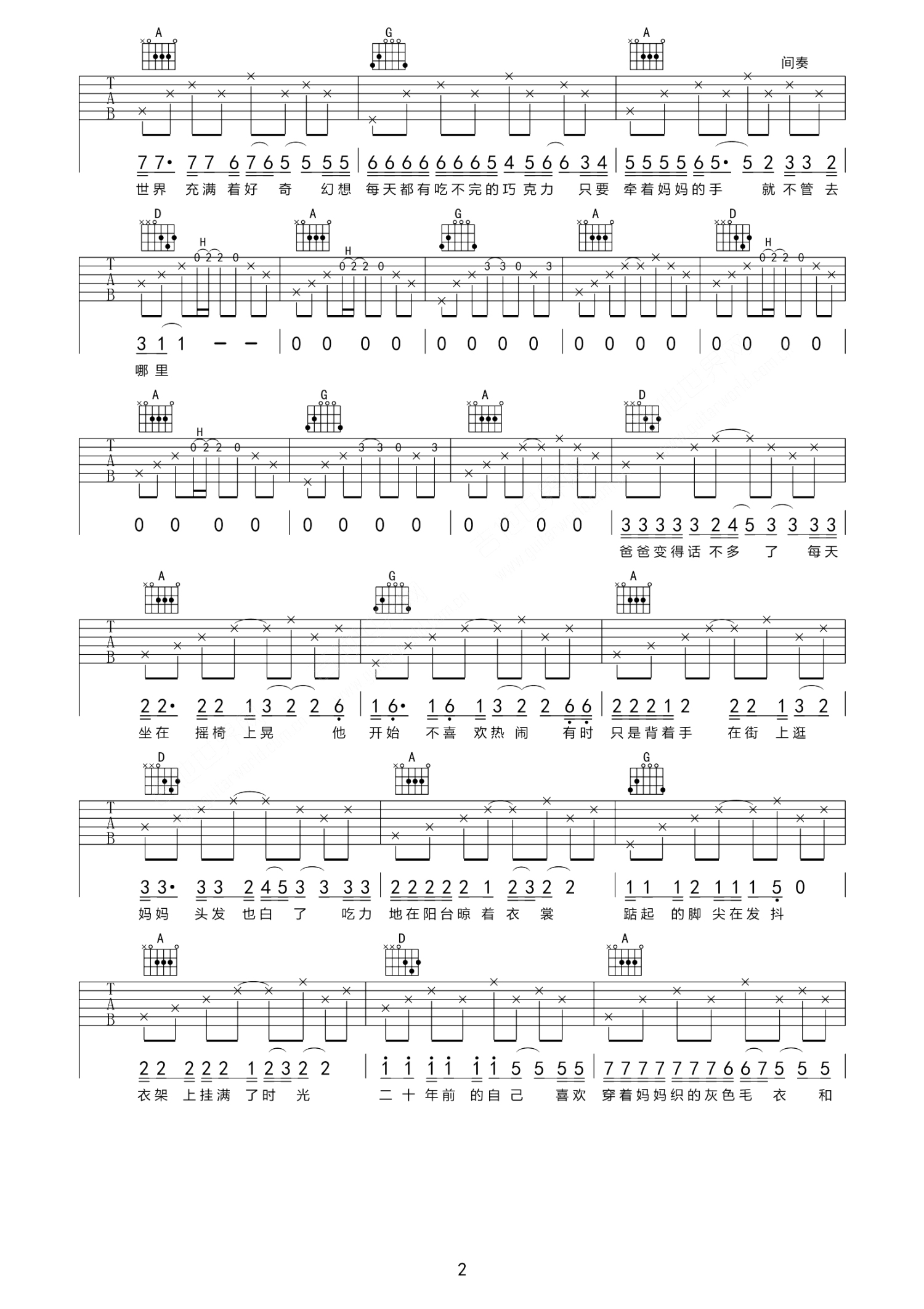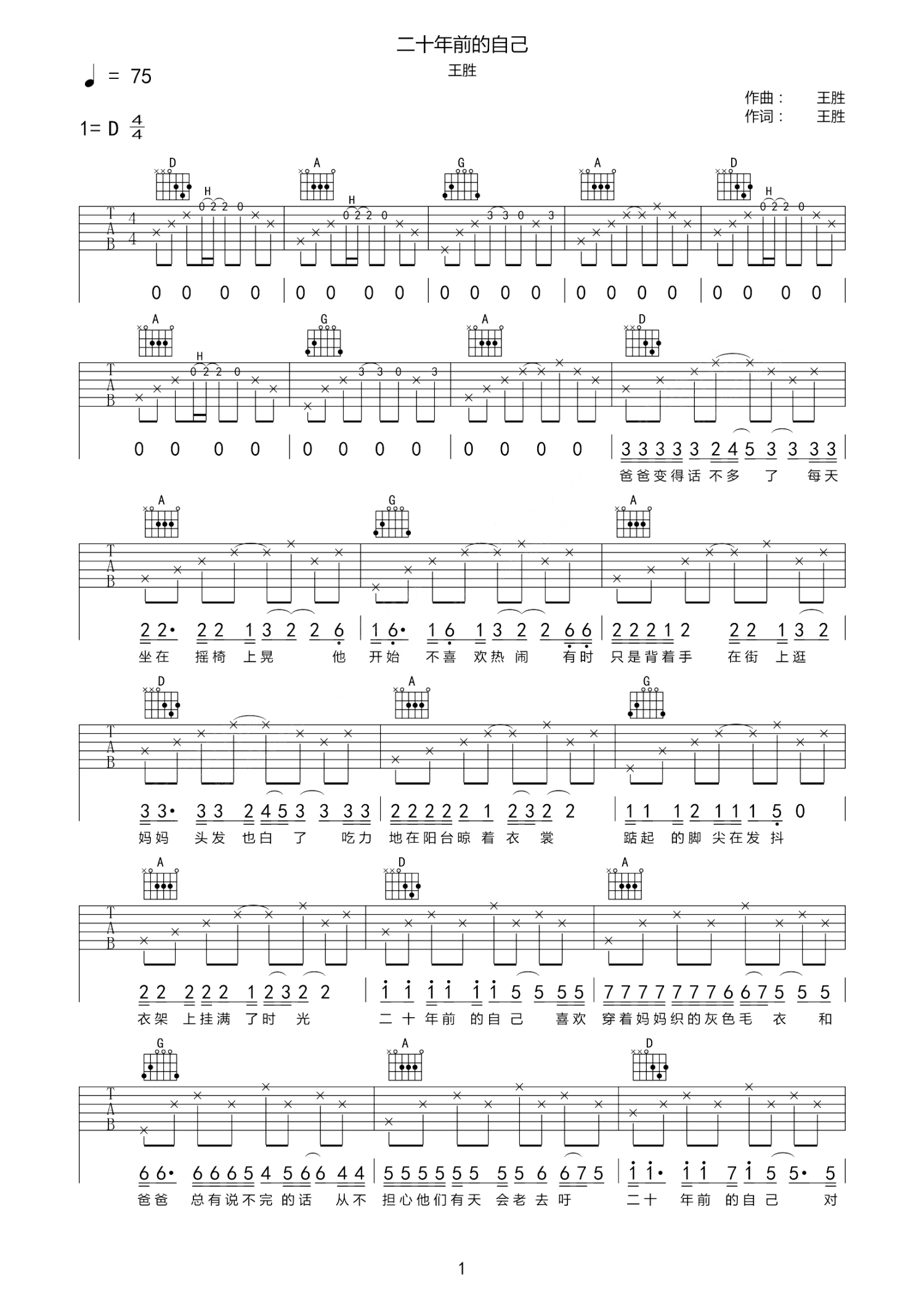 曲谱介绍: 王胜《二十年前的自己》吉他谱_D调吉他弹唱谱