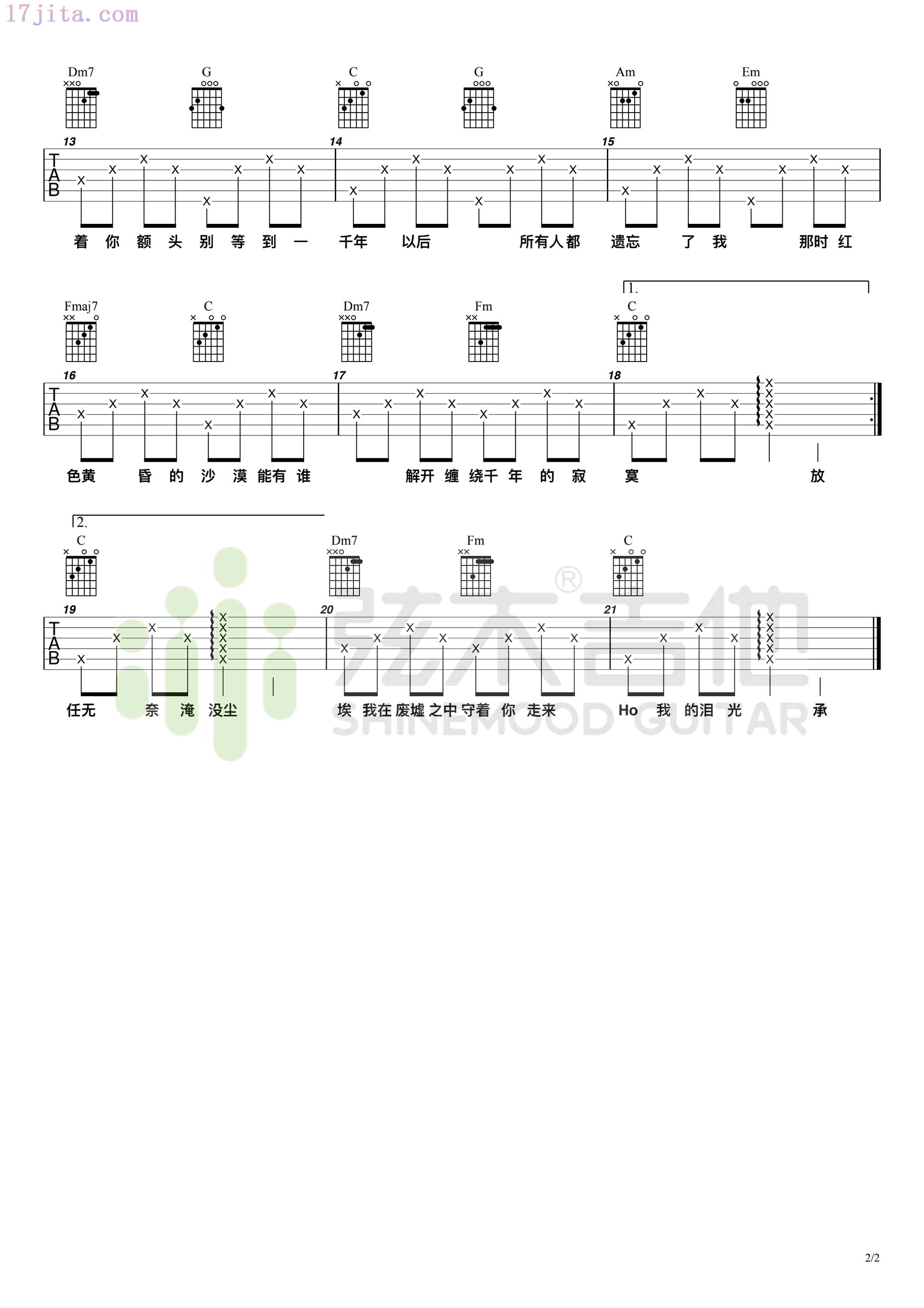 当前位置:琴谱网>吉他弹唱>一千年以后