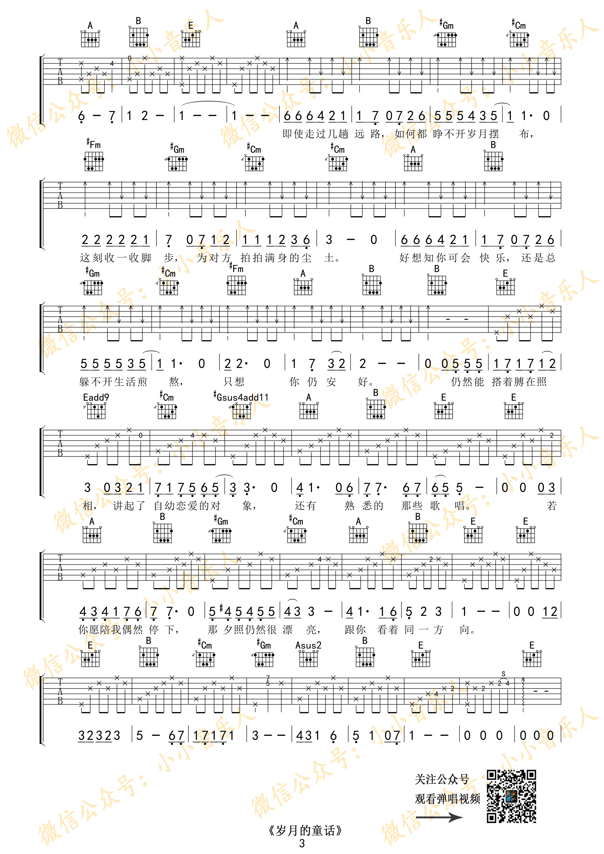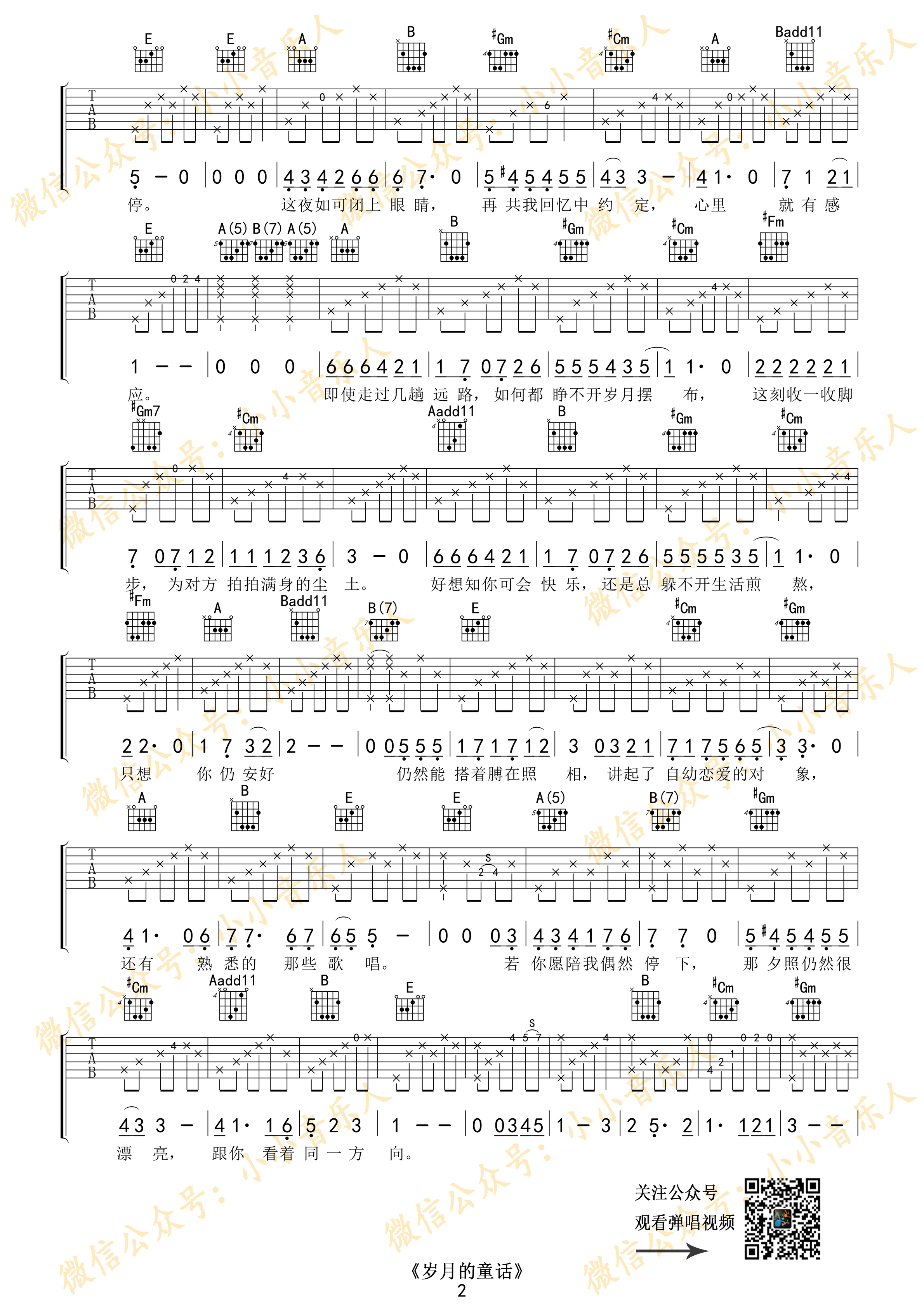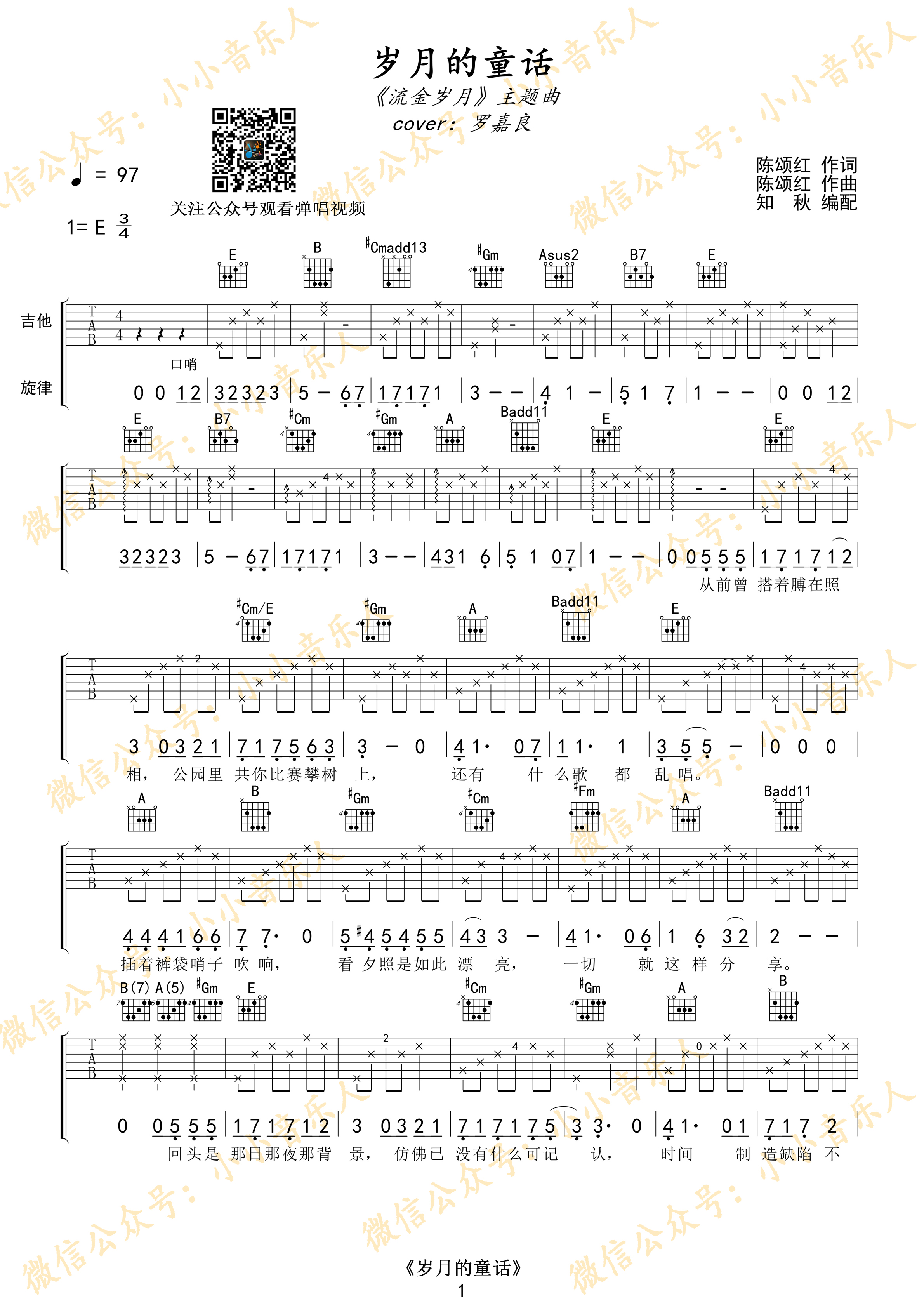 曲谱介绍: 罗嘉良《岁月的童话》吉他弹唱谱,共有3张高清图谱。
