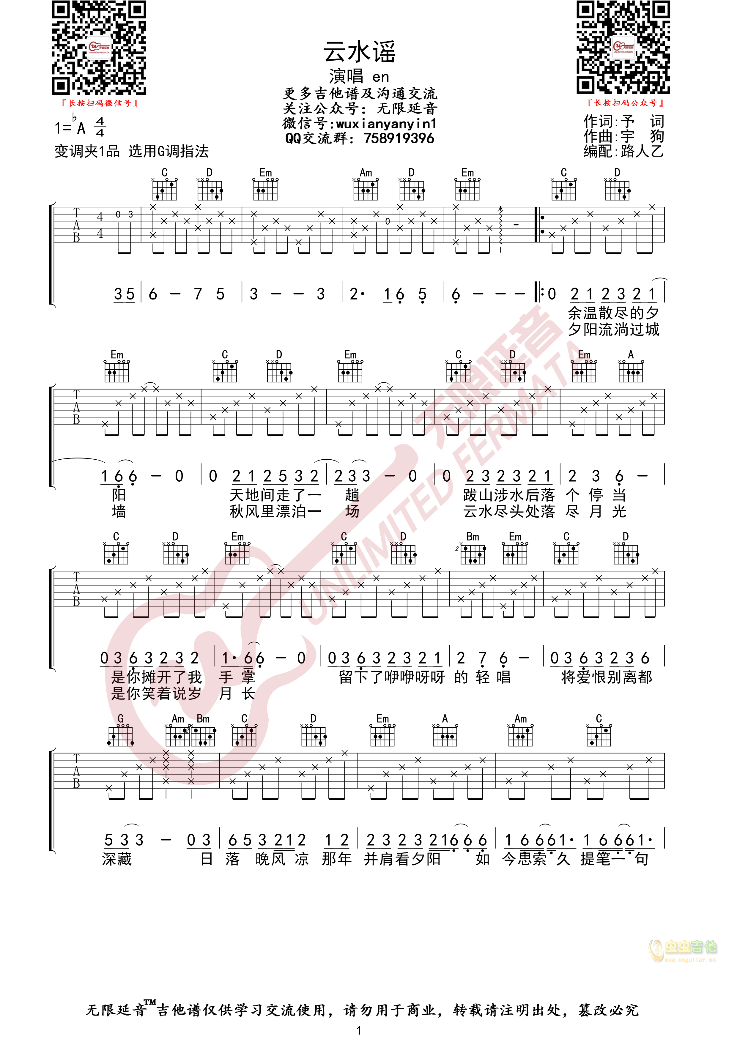 琴谱网为您精心推荐 云水谣 高清图谱