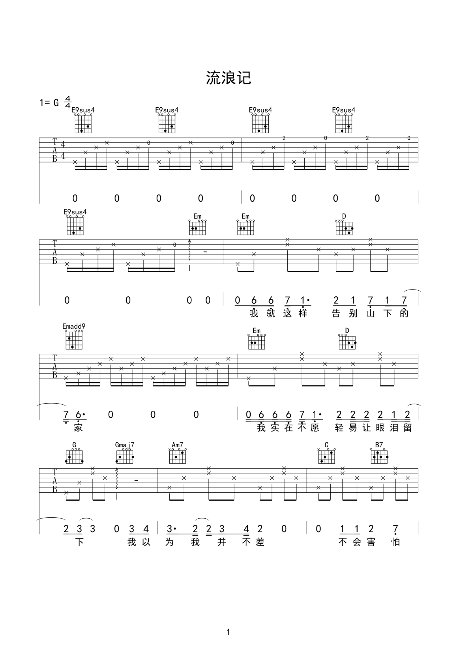 当前位置:琴谱网>吉他弹唱>流浪记