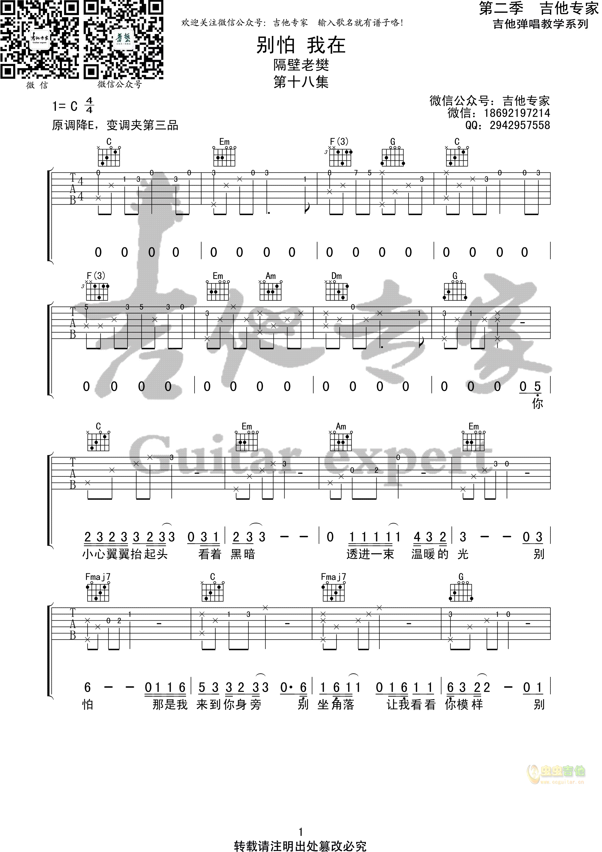 当前位置:琴谱网>吉他弹唱>别怕我在