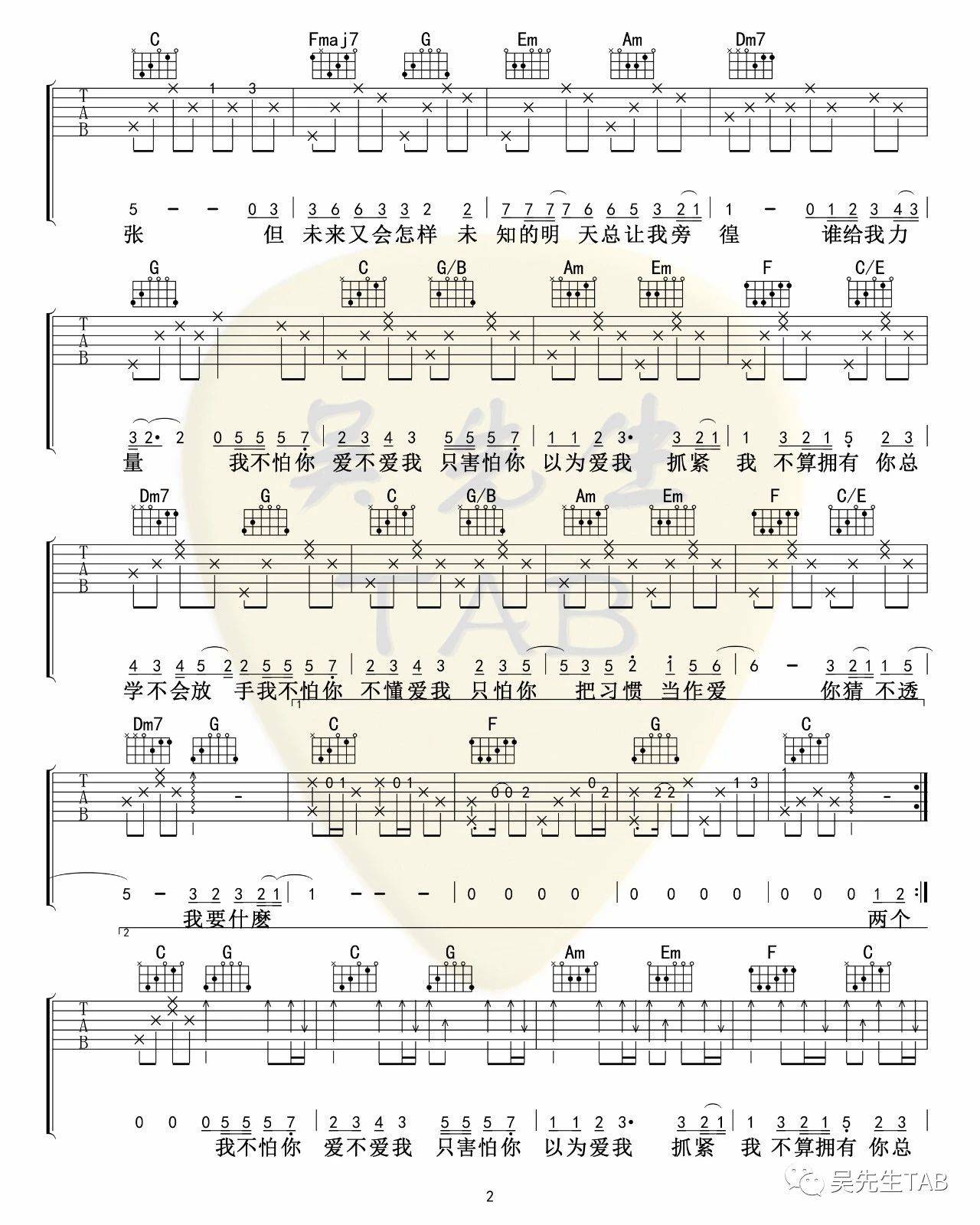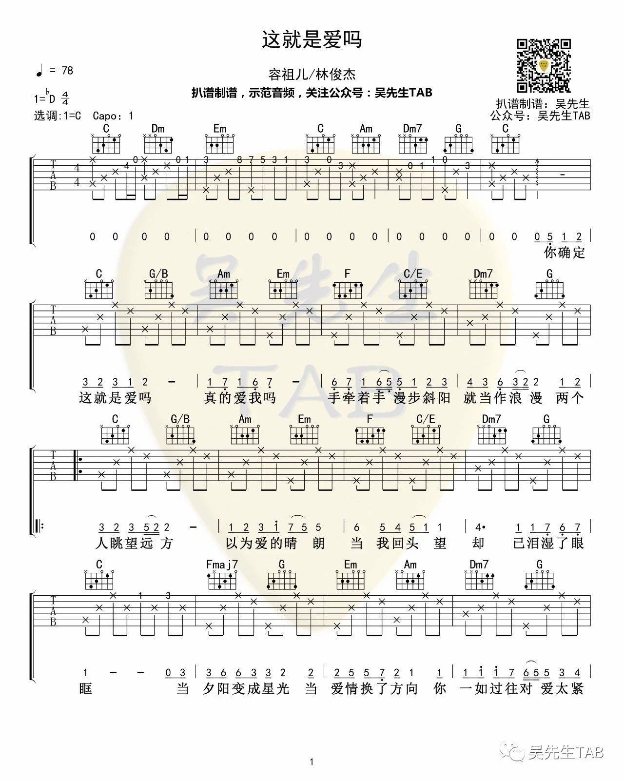 曲谱介绍: 《这就是爱吗》吉他弹唱谱,共有3张高清图谱。