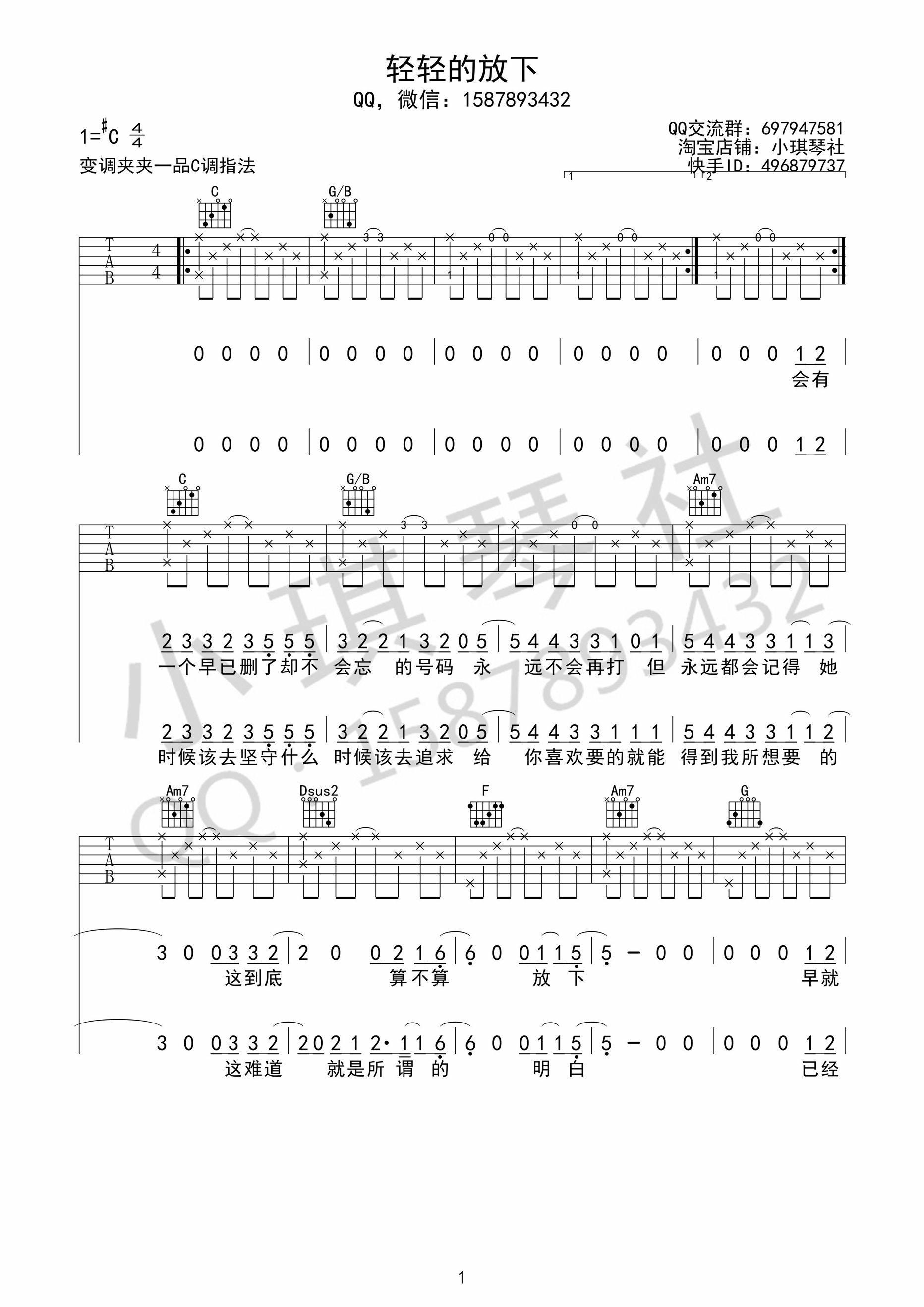 轻轻的放下吉他谱 - 吉他弹唱谱