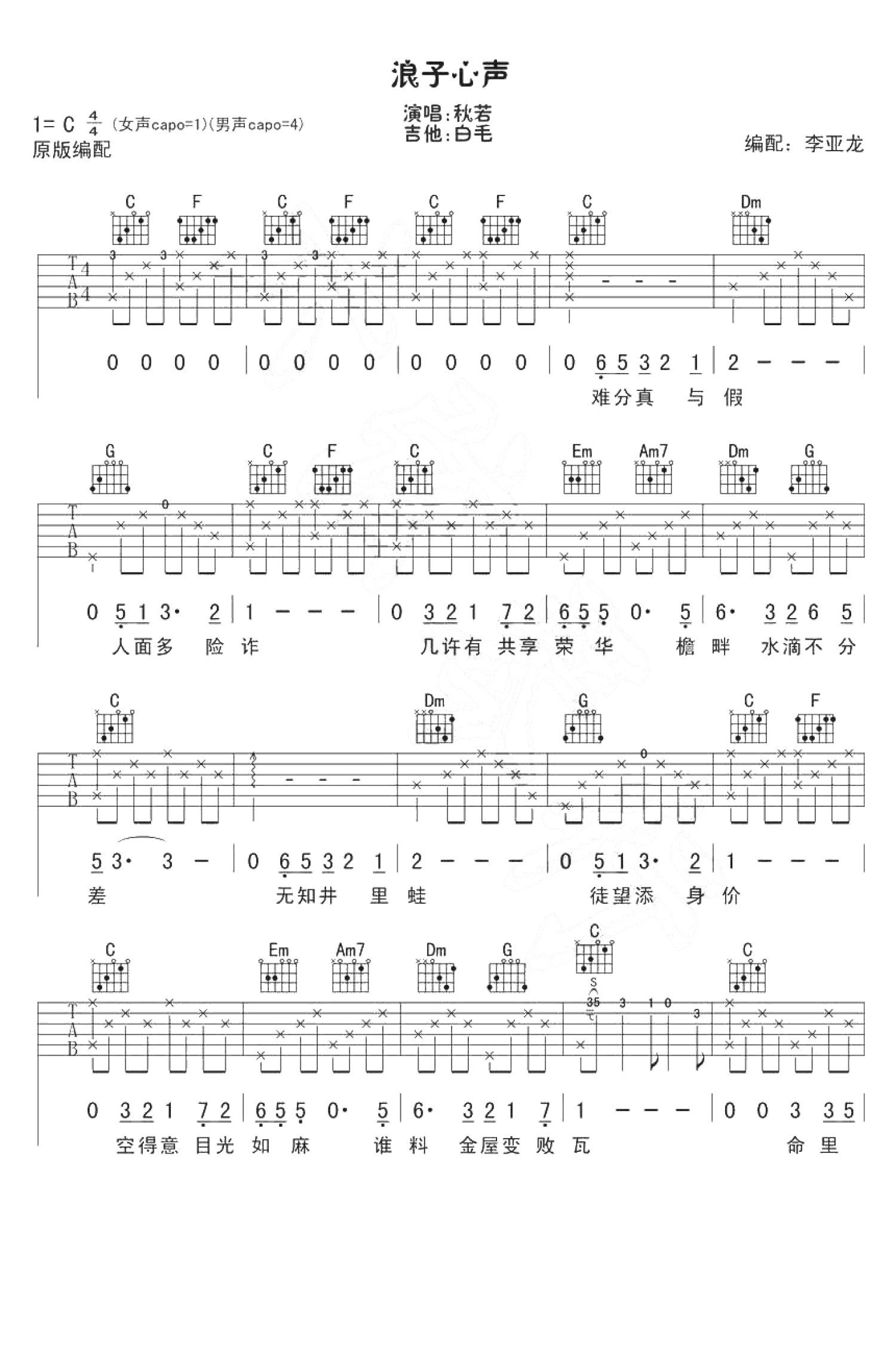 当前位置:琴谱网>吉他弹唱>浪子心声
