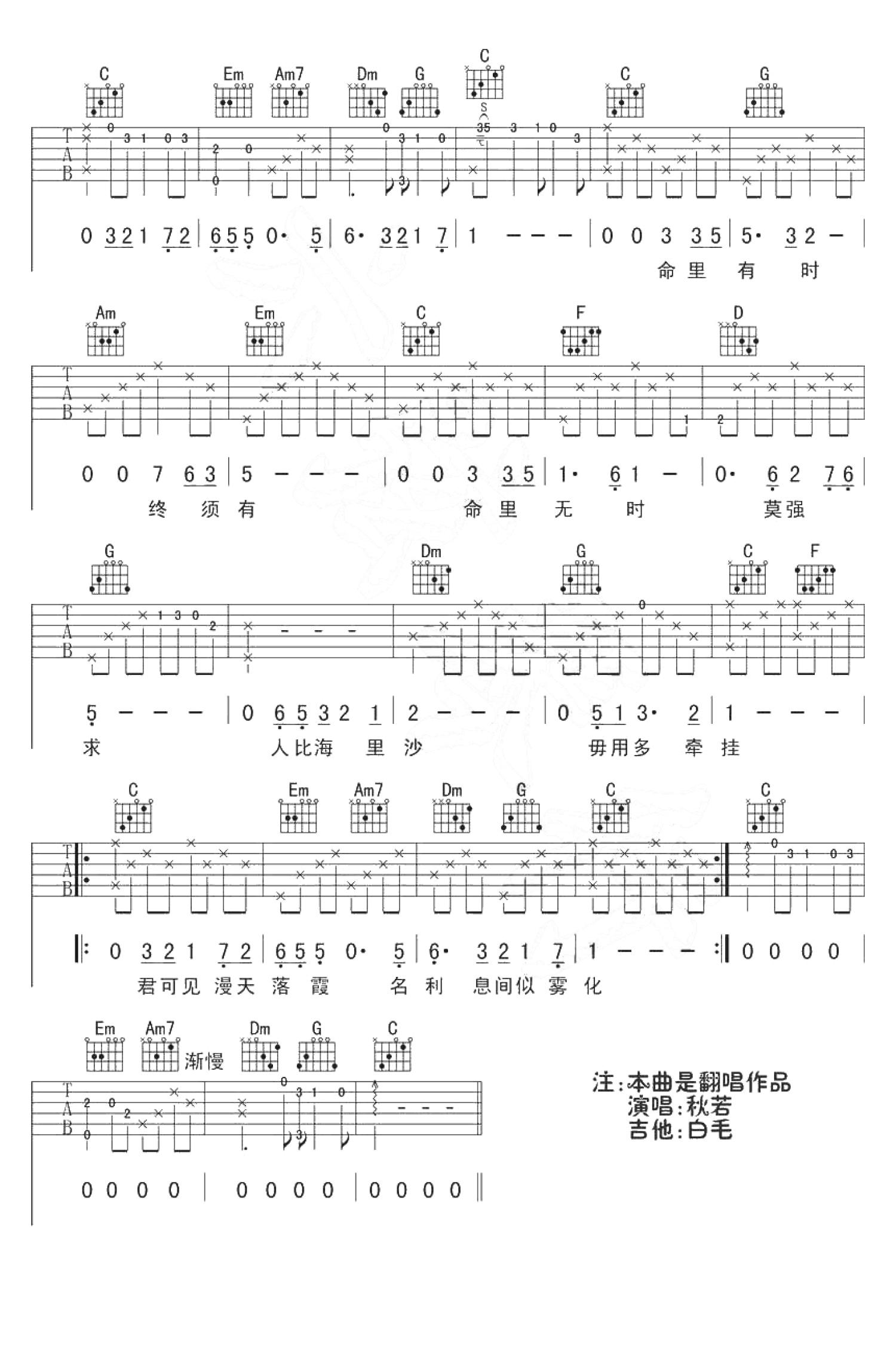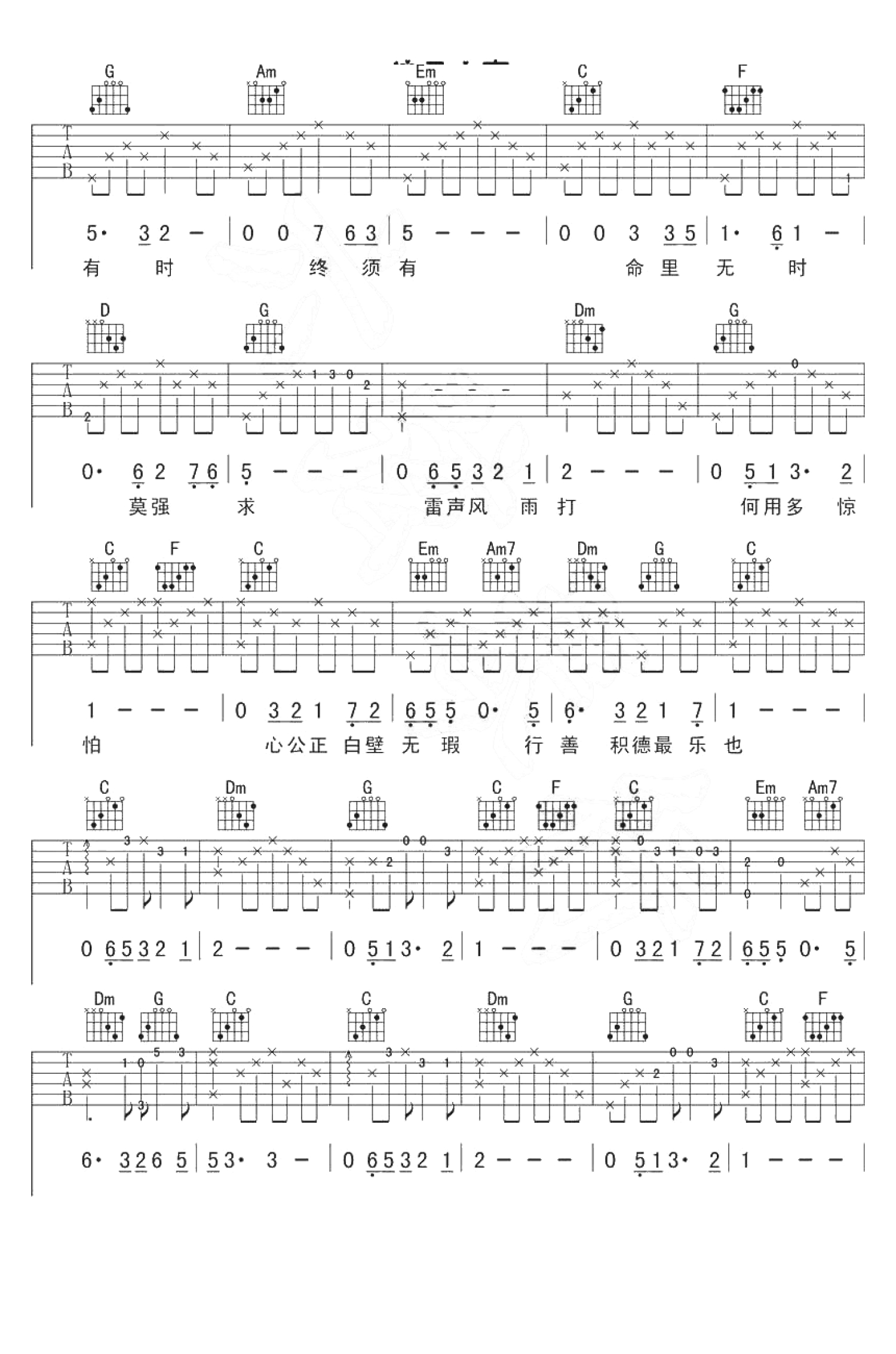 吉他弹唱C调来源:六弦琴行4153 浏览2019-12-18 13:57发布图谱共3页
