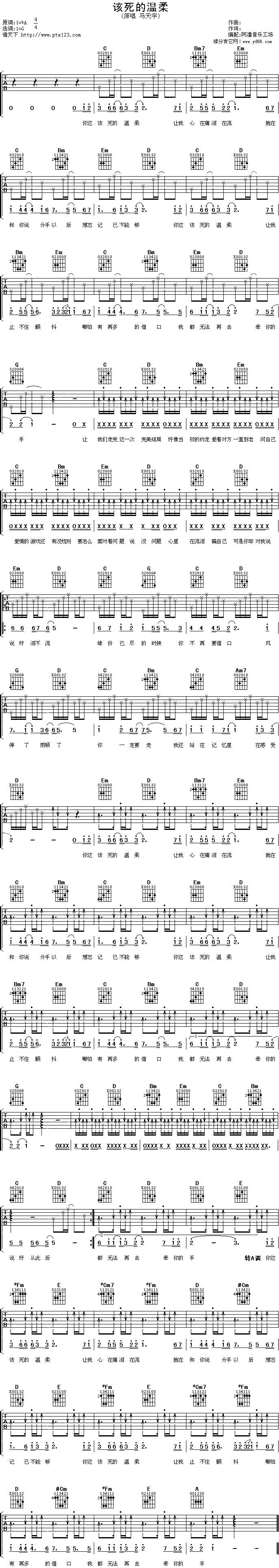 该死的温柔吉他谱 - 吉他弹唱谱