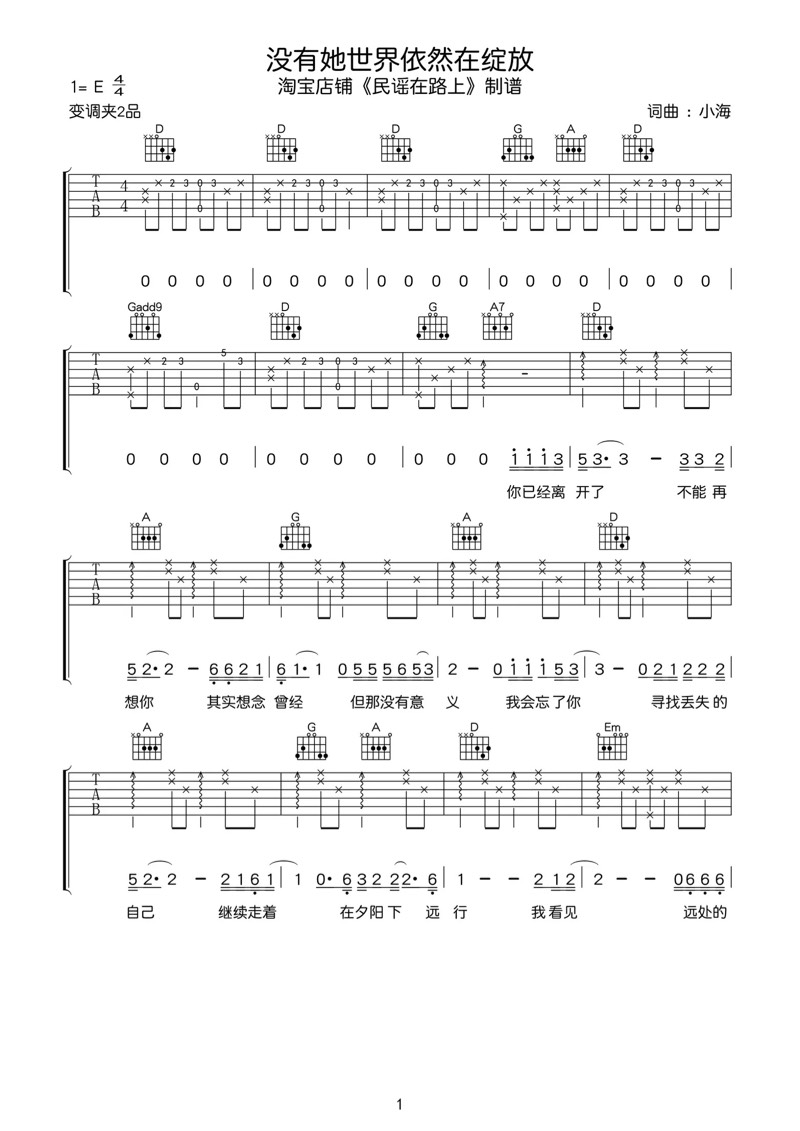 曲谱介绍: 《没有她世界依然在绽放》吉他弹唱谱,共有5张高清图谱。