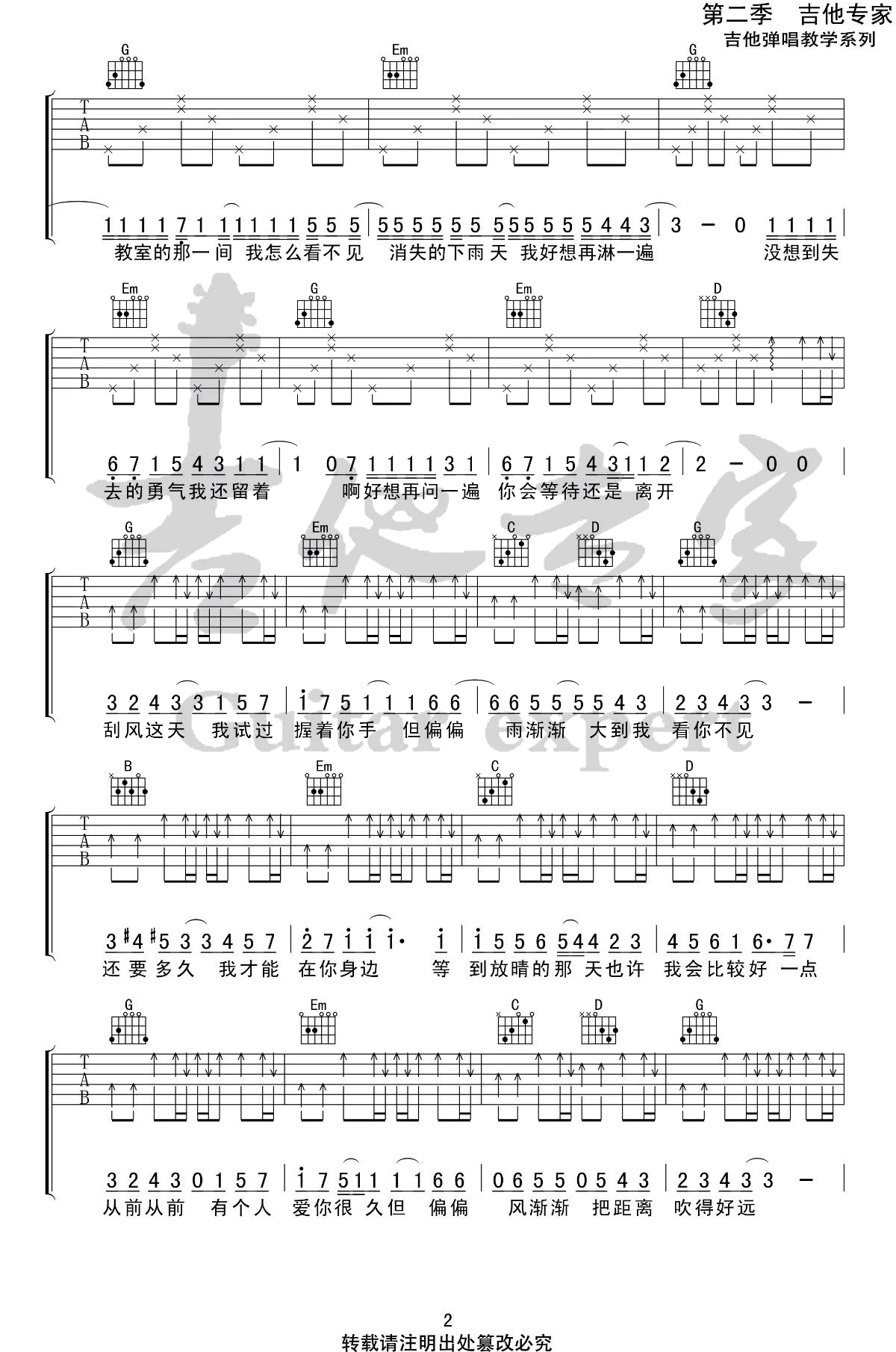 晴天吉他谱 - 周杰伦 - 吉他弹唱谱