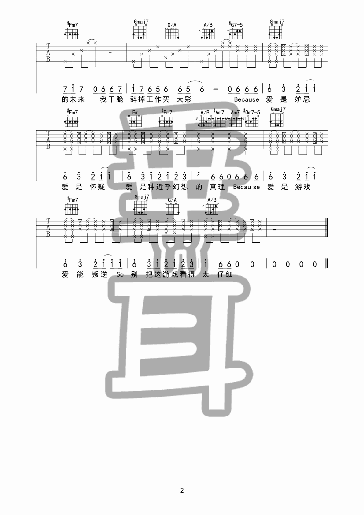 曲谱介绍: 《爱是怀疑》吉他弹唱谱,共有2张高清图谱,免翻页排版设计。