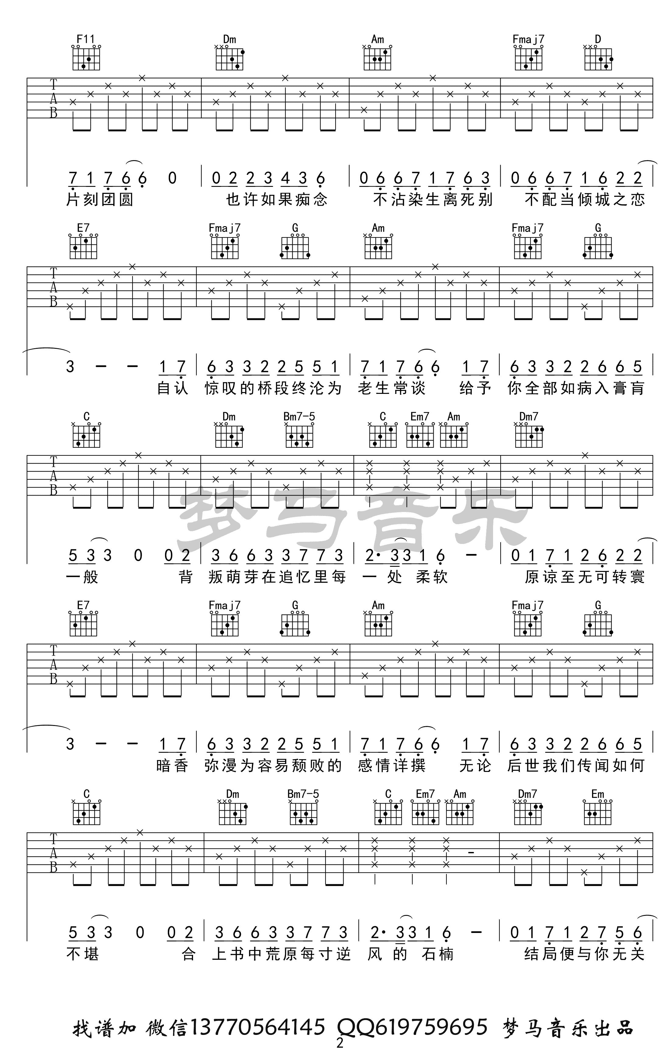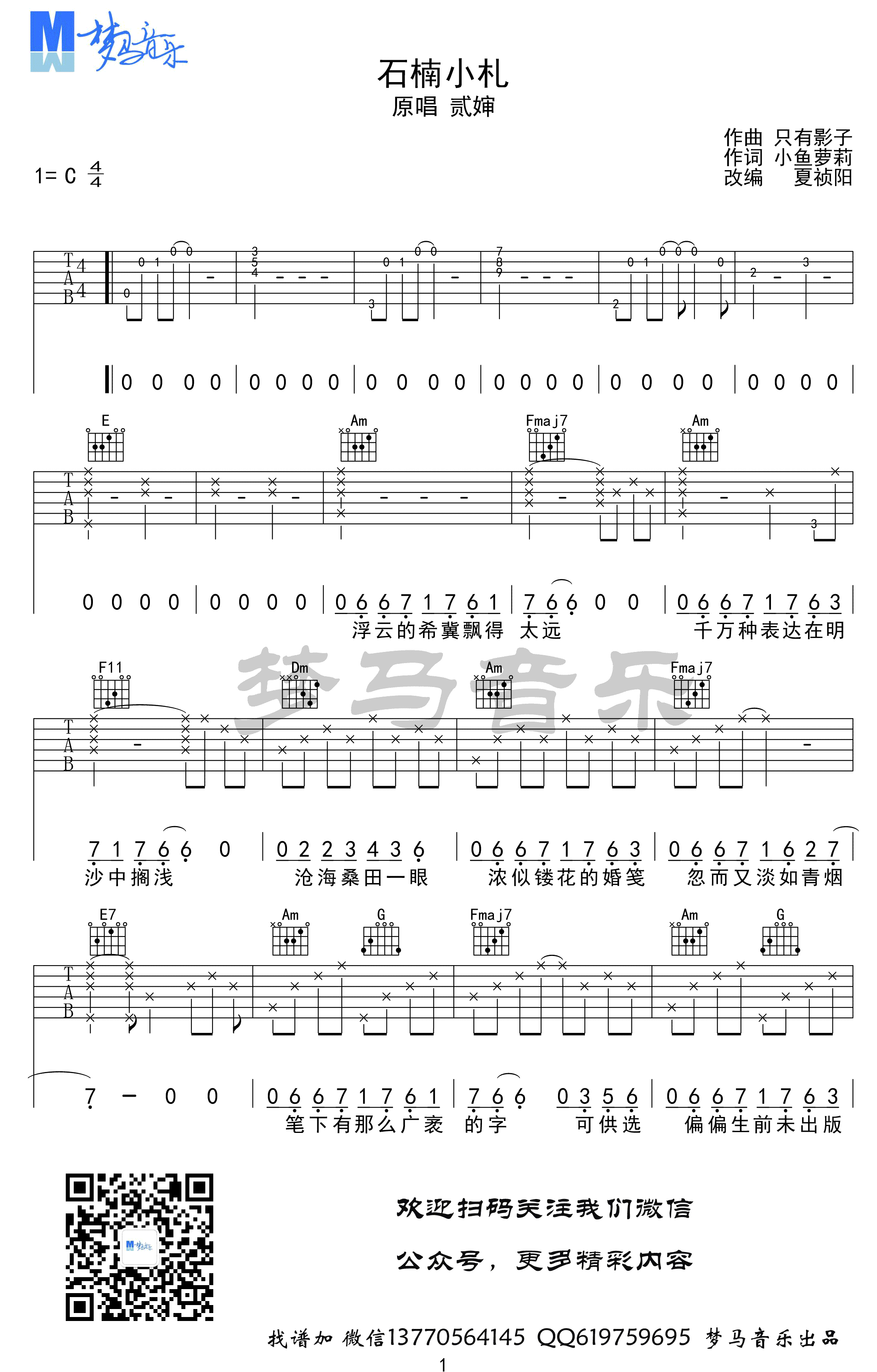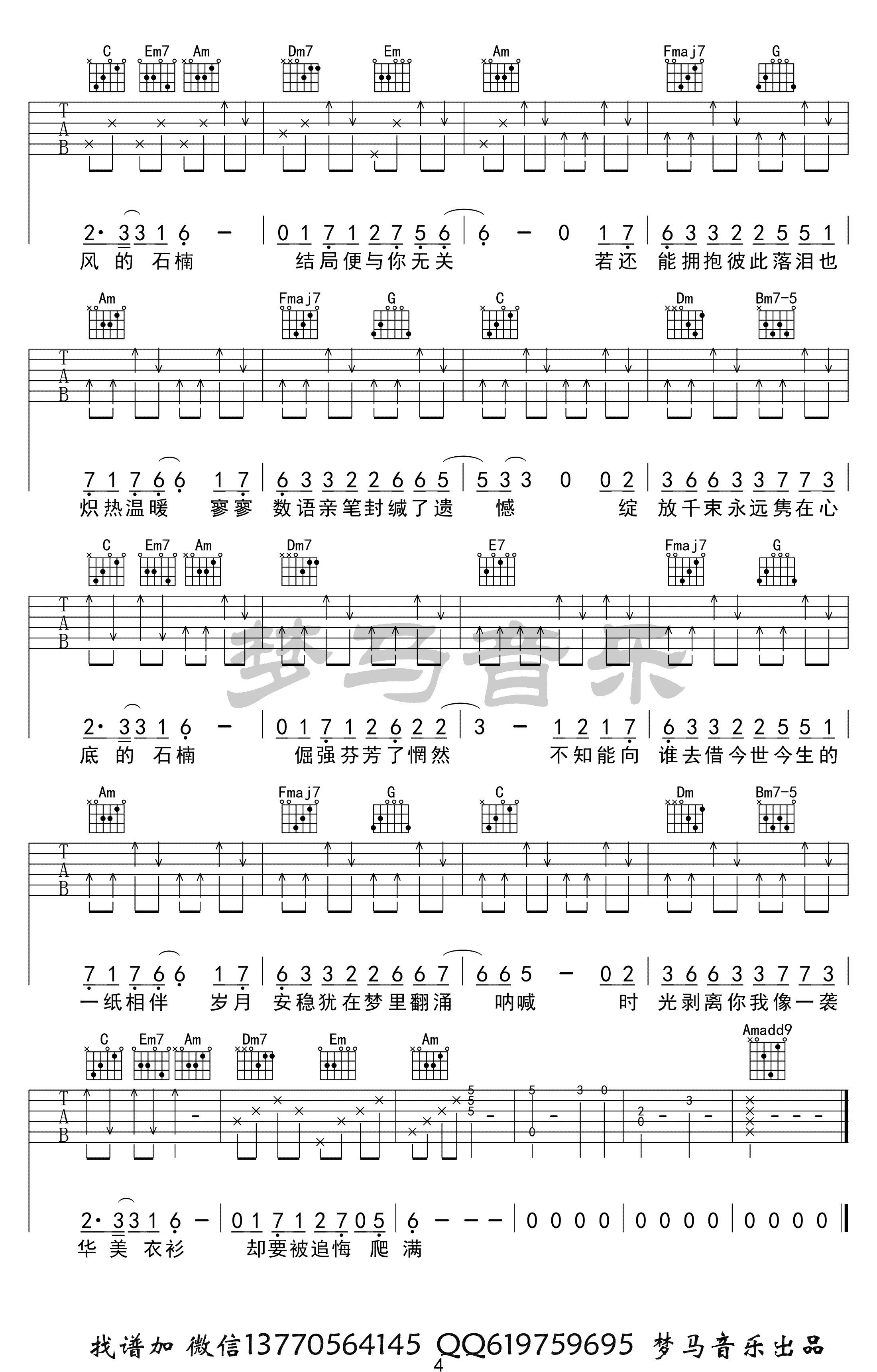 曲谱介绍: 《石楠小札》吉他弹唱谱,共有4张高清图谱。