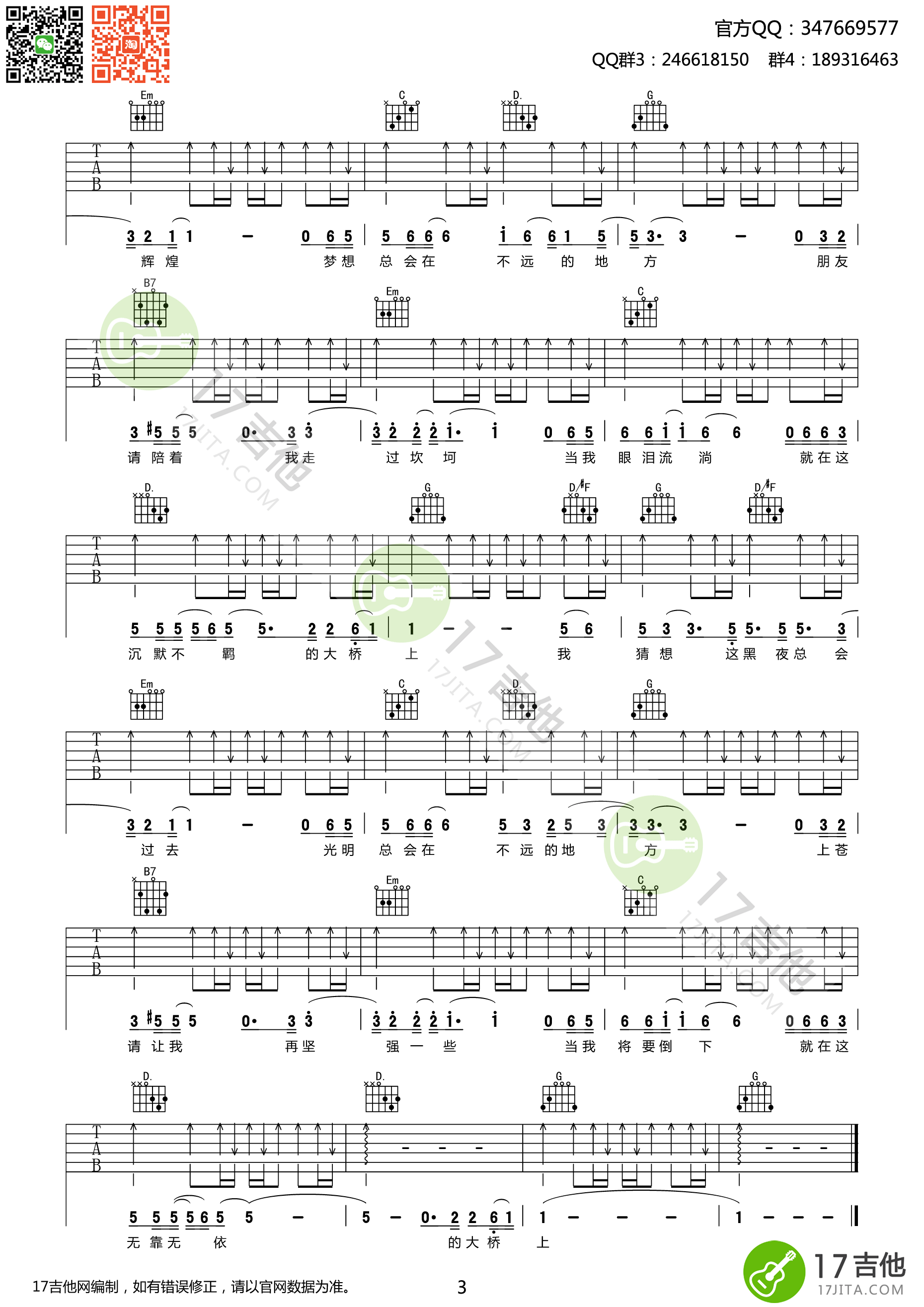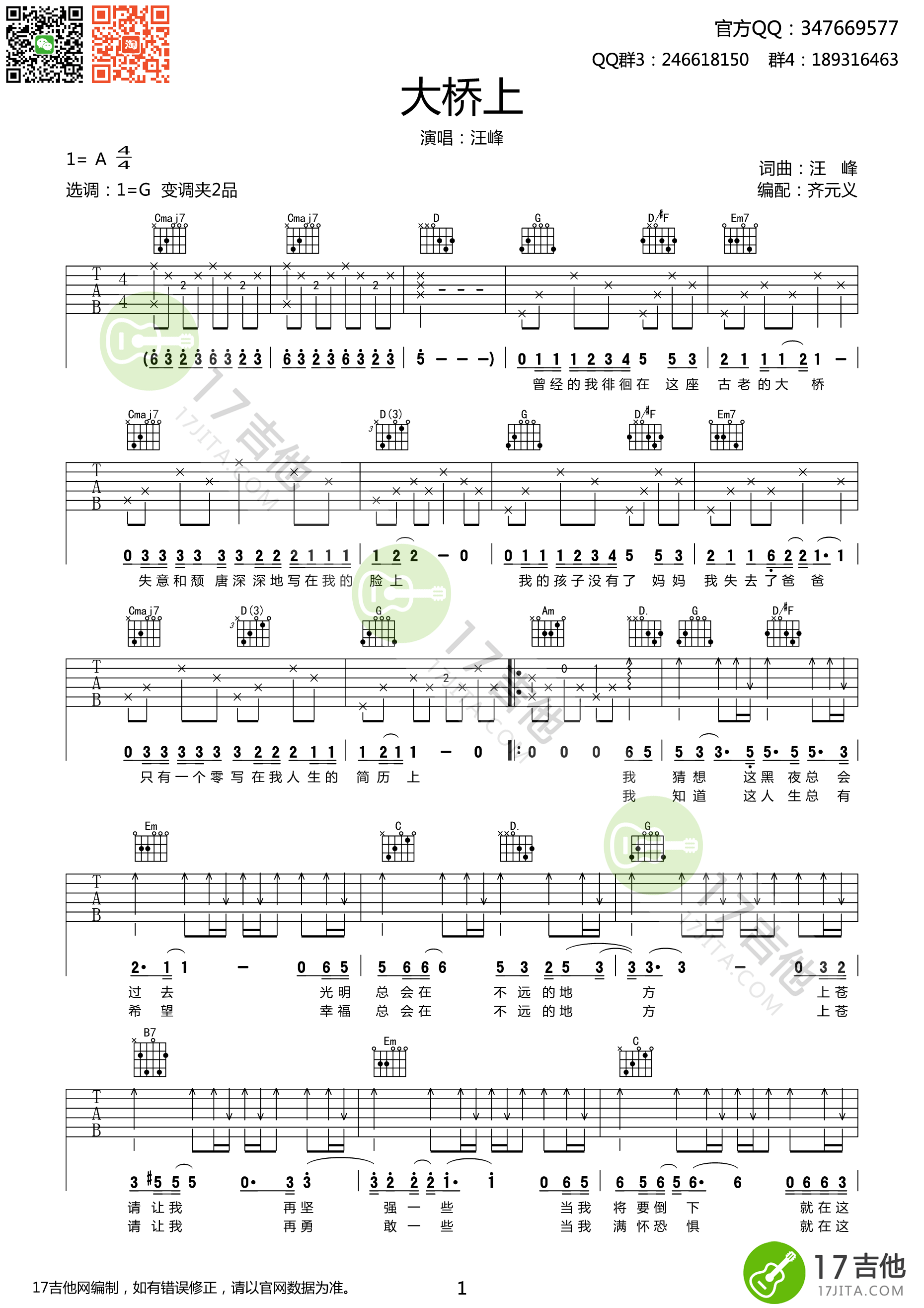 大桥上吉他谱 - 吉他弹唱谱