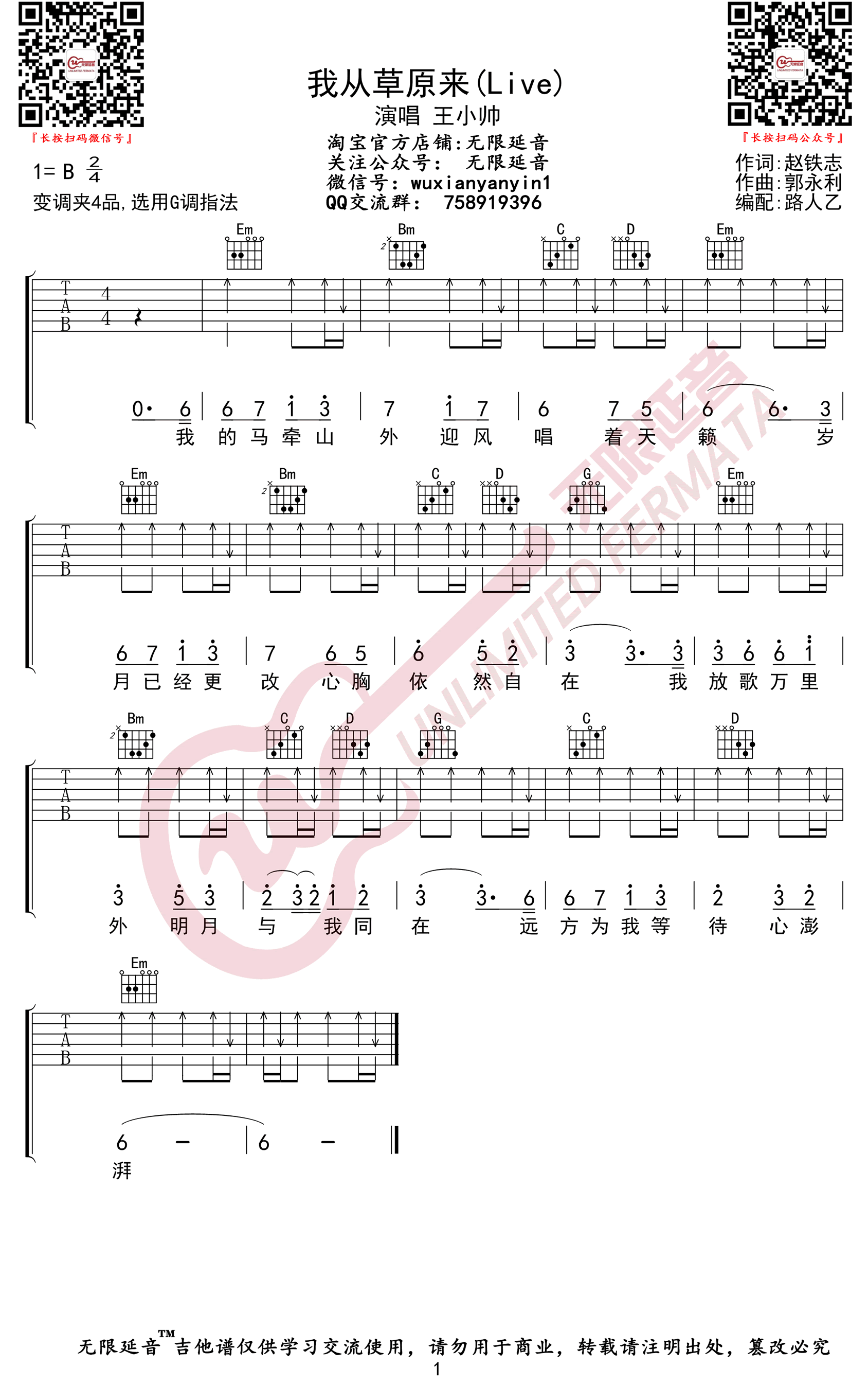 我从草原来吉他谱 - 王小帅 - 吉他弹唱谱