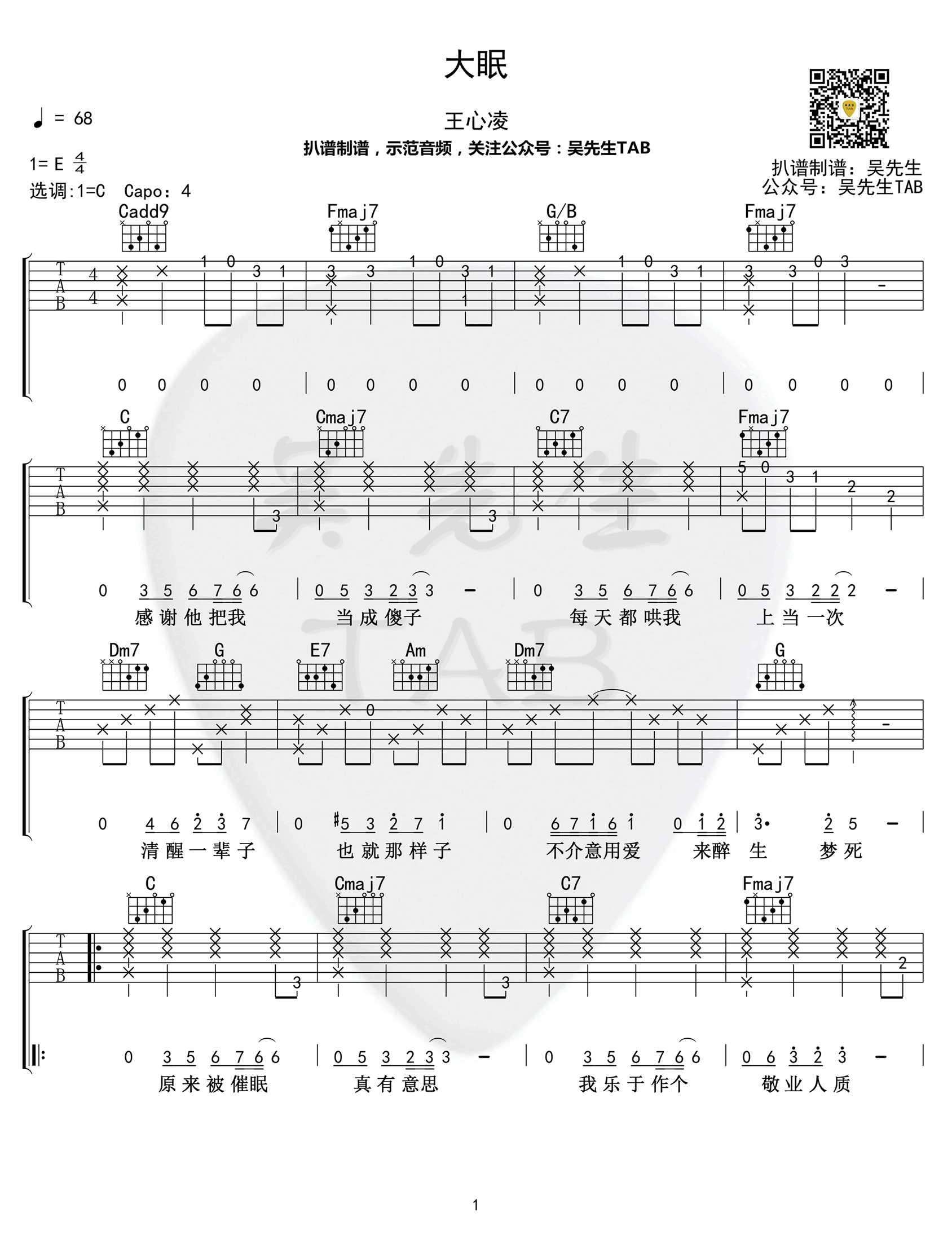 大眠吉他谱 - 吉他弹唱谱