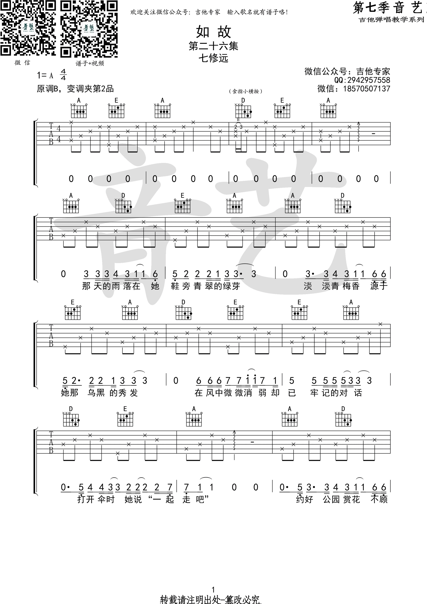 当前位置:琴谱网>吉他弹唱>如故