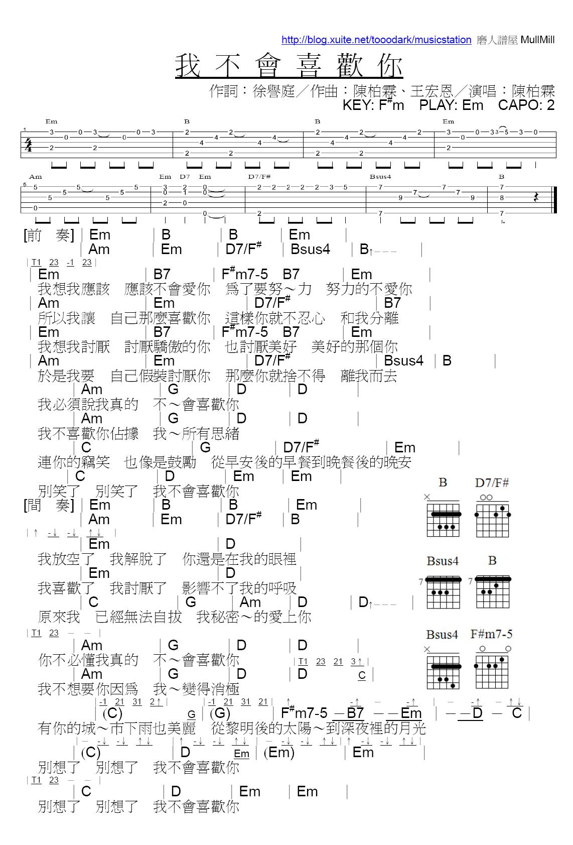 我不会喜欢你吉他谱 - 吉他弹唱谱