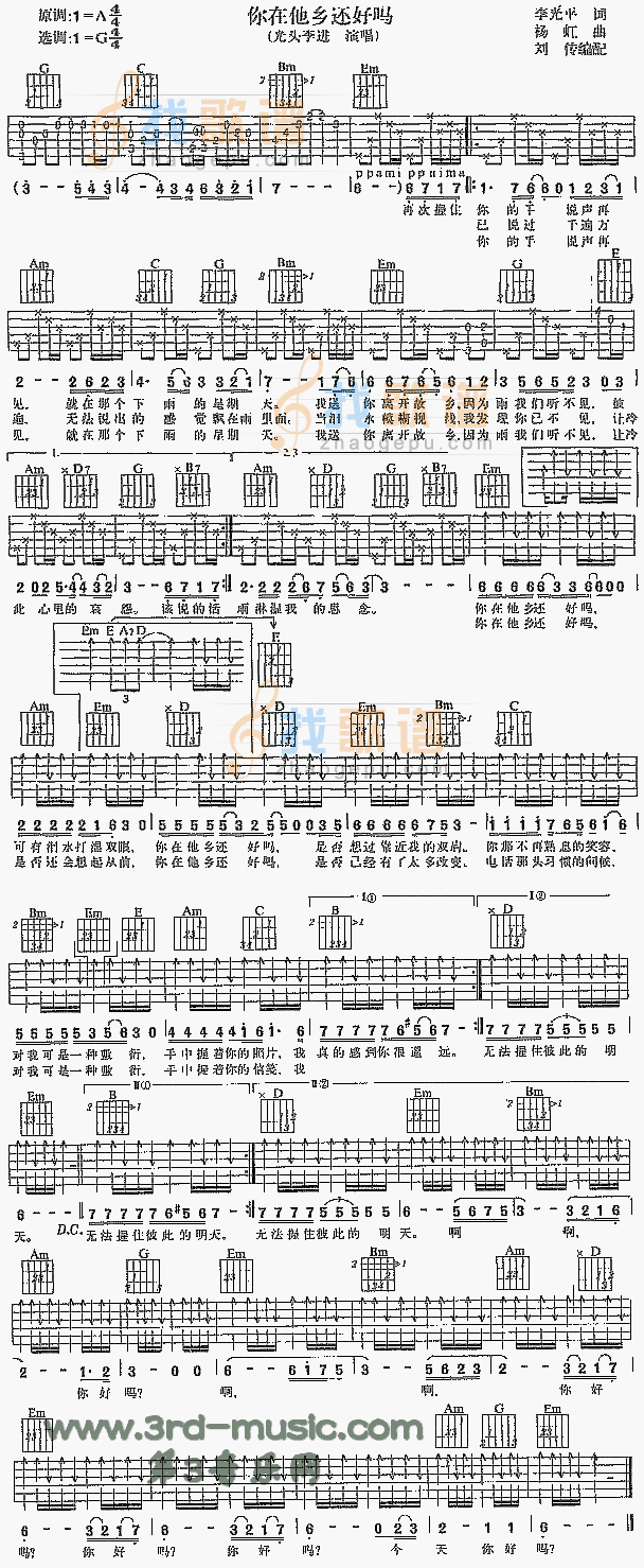 你在他乡还好吗吉他谱 - 吉他弹唱谱